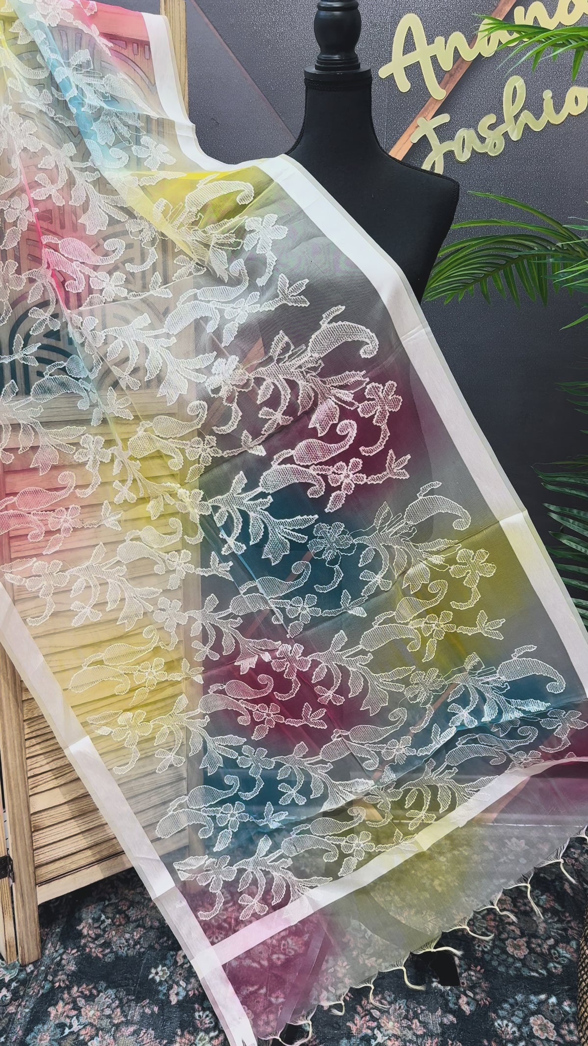 Inform when this item available Multicolor Organza Dupatta with Thread Embroidery