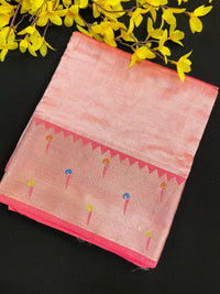 Enhance your ethnic wardrobe with our exquisite Pastel colors Mangalagiri Silk sarees with Paithani Borders, exclusively available at Anandi Fashions. Crafted to perfection, these sarees elegantly blend the traditional Mangalagiri weaving technique with the luxurious touch of stunning Pythani borders. Perfect for any festive occasion or celebration, our sarees offer timeless charm and sophisticated grace.