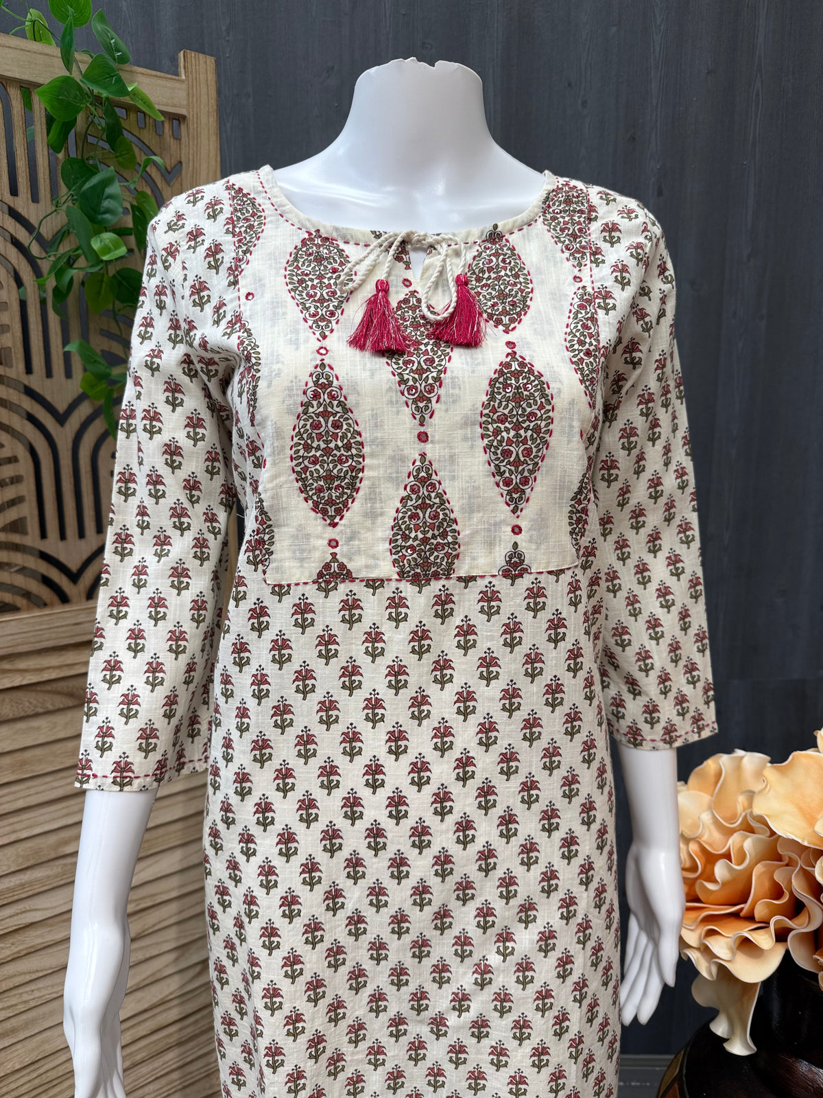 Pure Cotton Kurti with side pocket and Jaipuri prints.