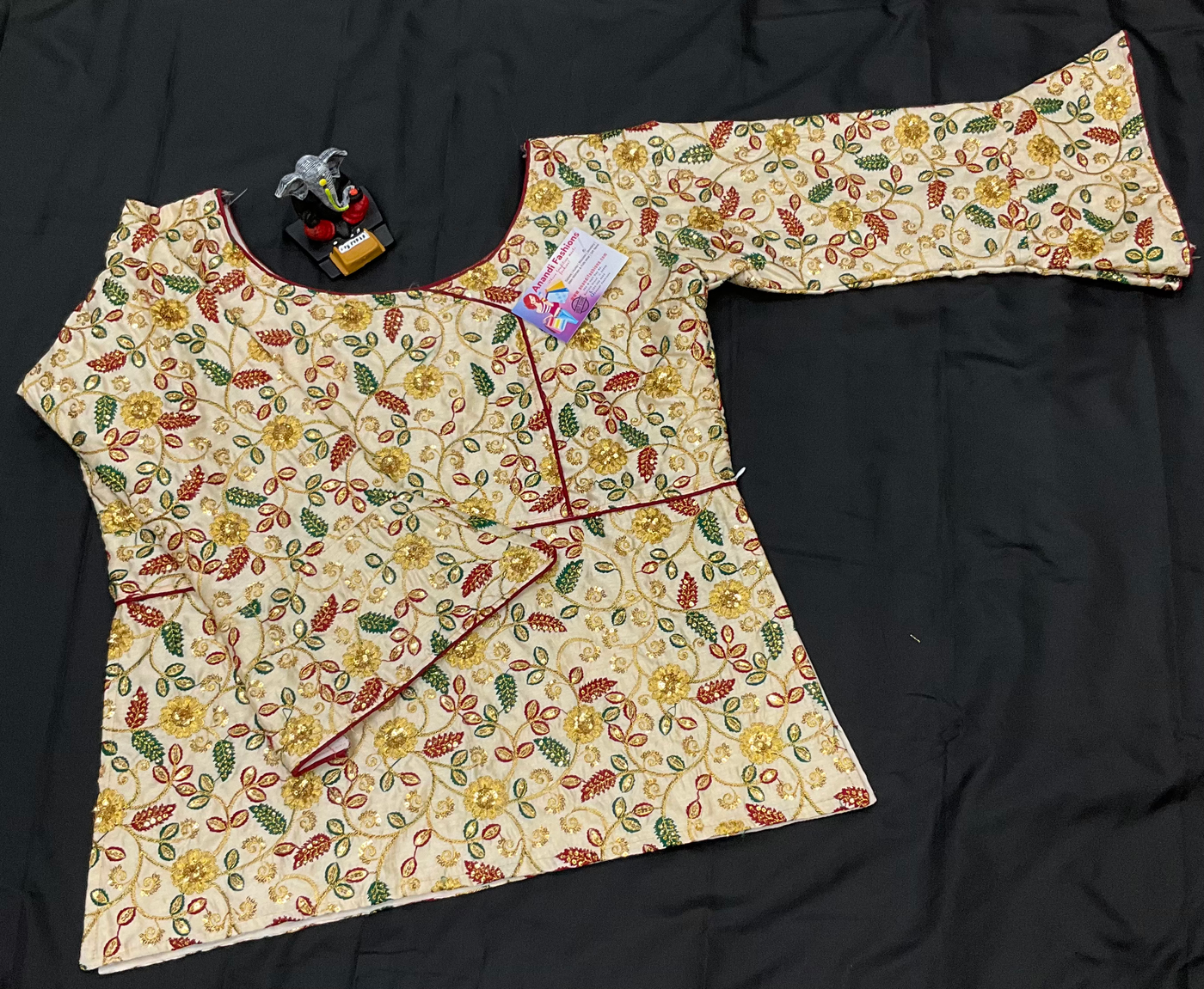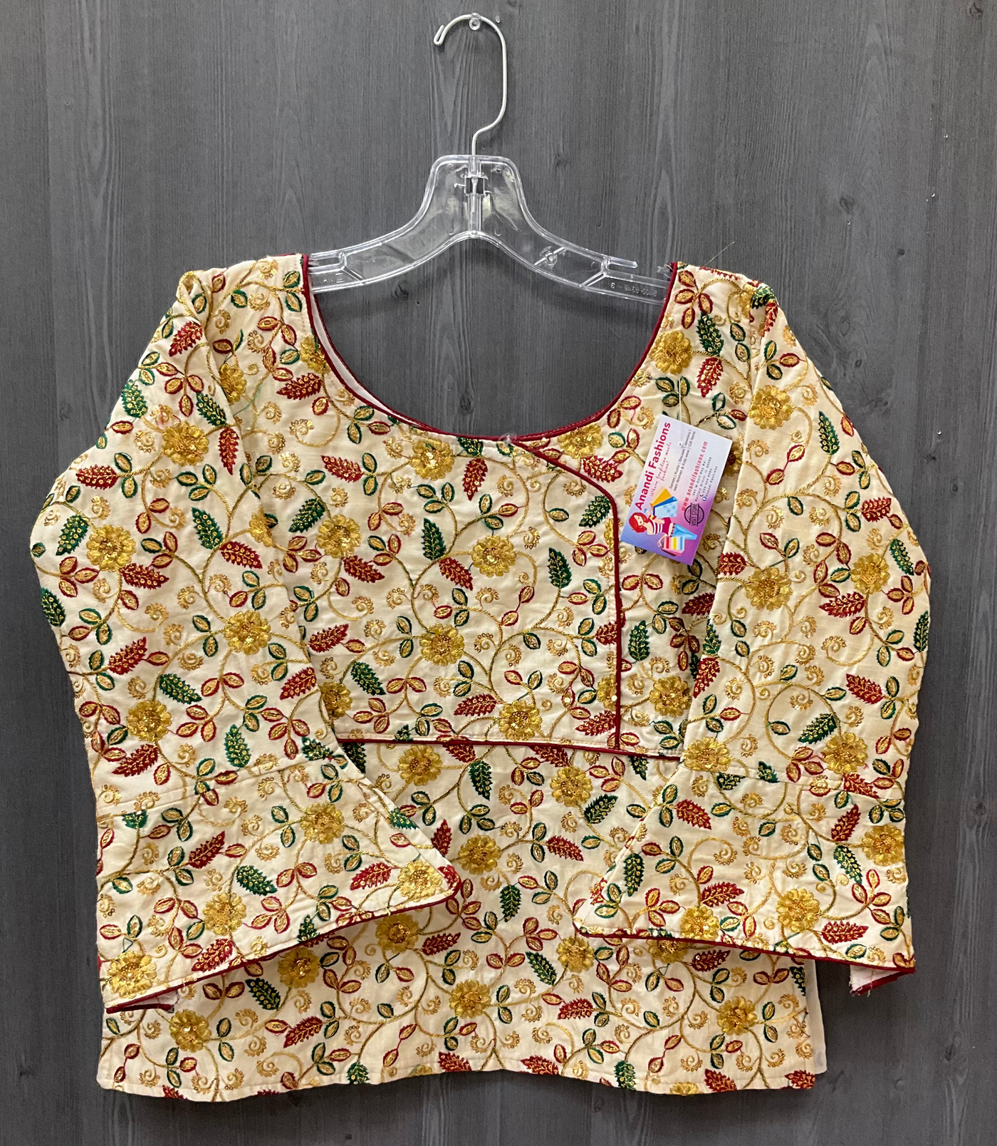 This long sleeve blouse is the perfect addition to any woman's wardrobe! Crafted from stunning raw silk in a gorgeous gold color, this blouse is sure to turn heads. The intricate embroidery adds a touch of sophistication and elegance to the overall design. The long sleeves make it perfect for cooler weather, while the breathable silk material ensures comfort all day long. Whether paired with jeans or a skirt, this blouse is a stunning choice for any occasion.
