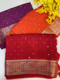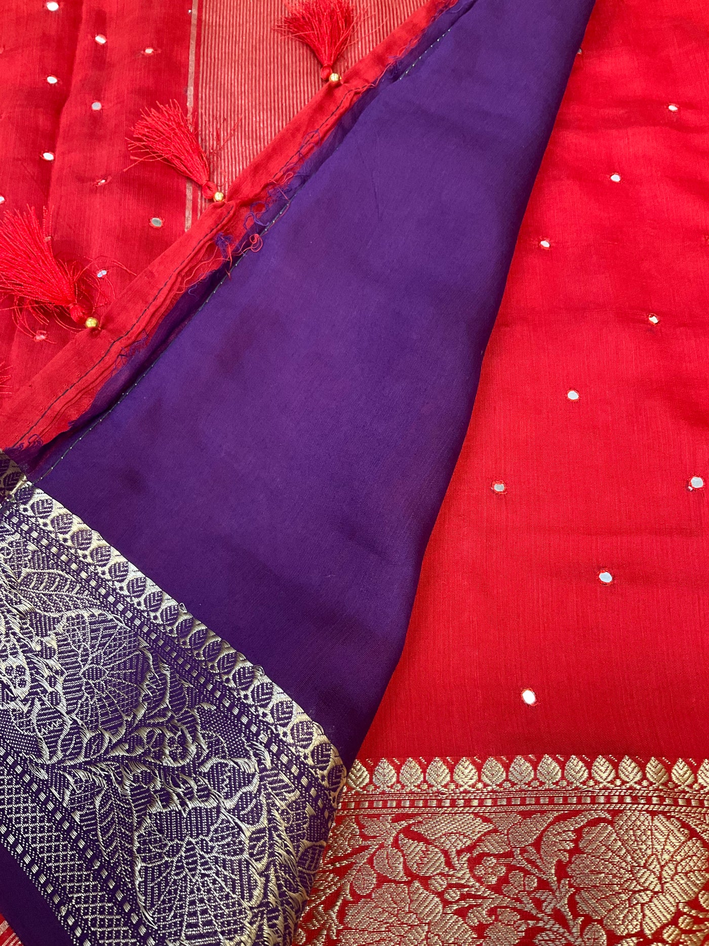 Red Mangalagiri Cotton Silk Sarees with contrast Purple Blouse material