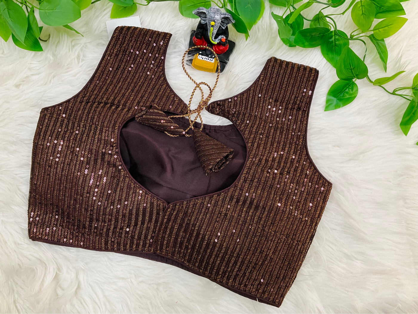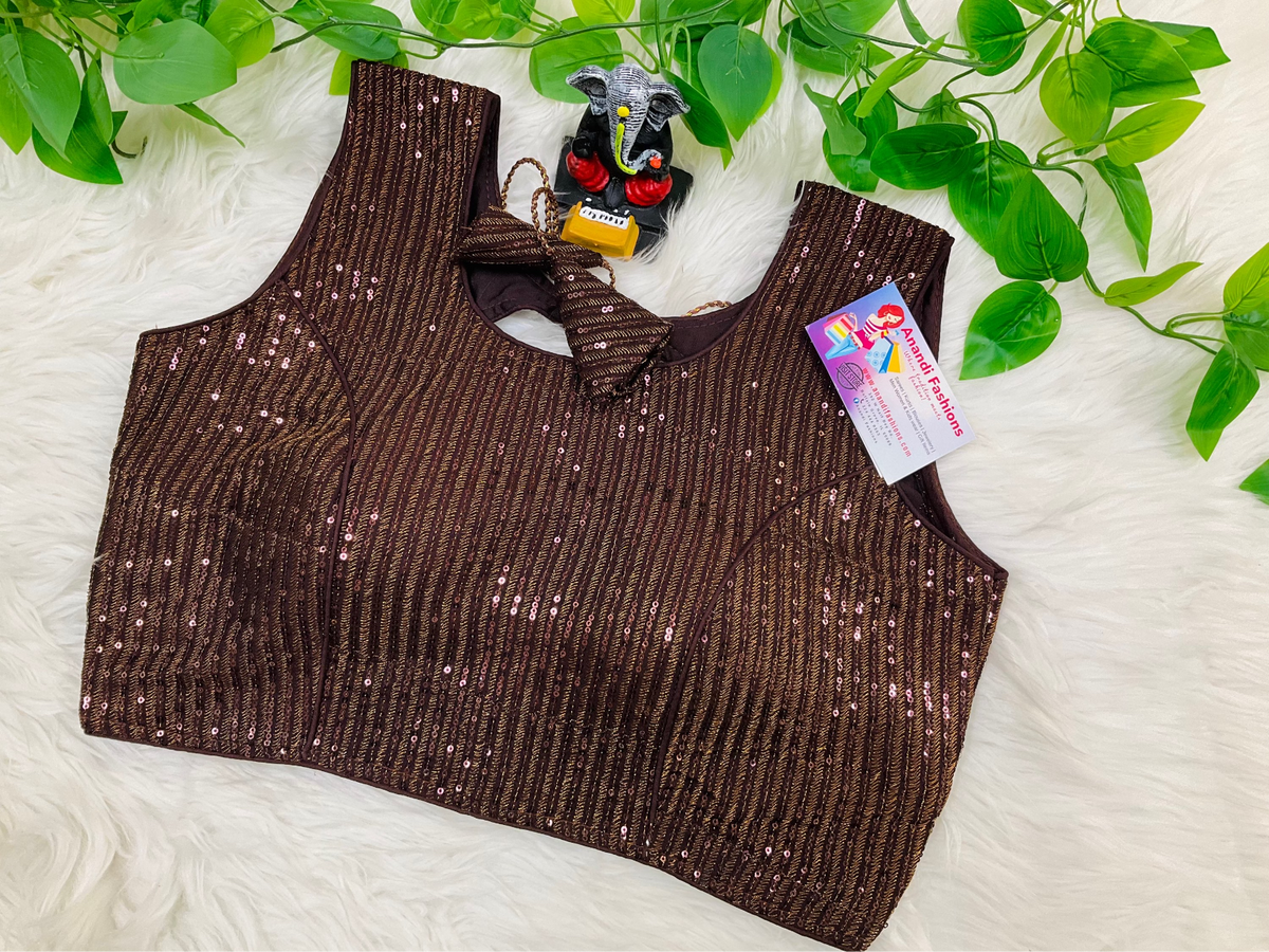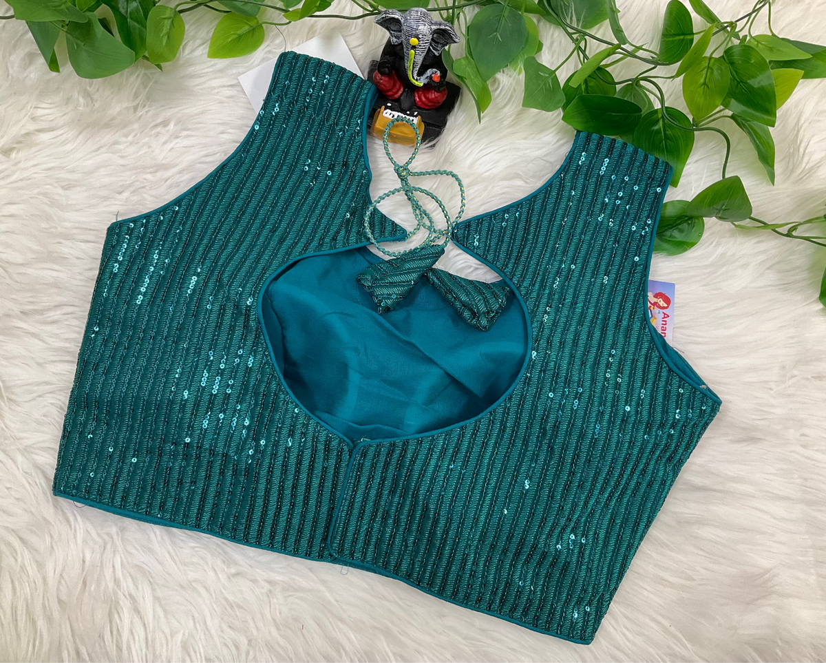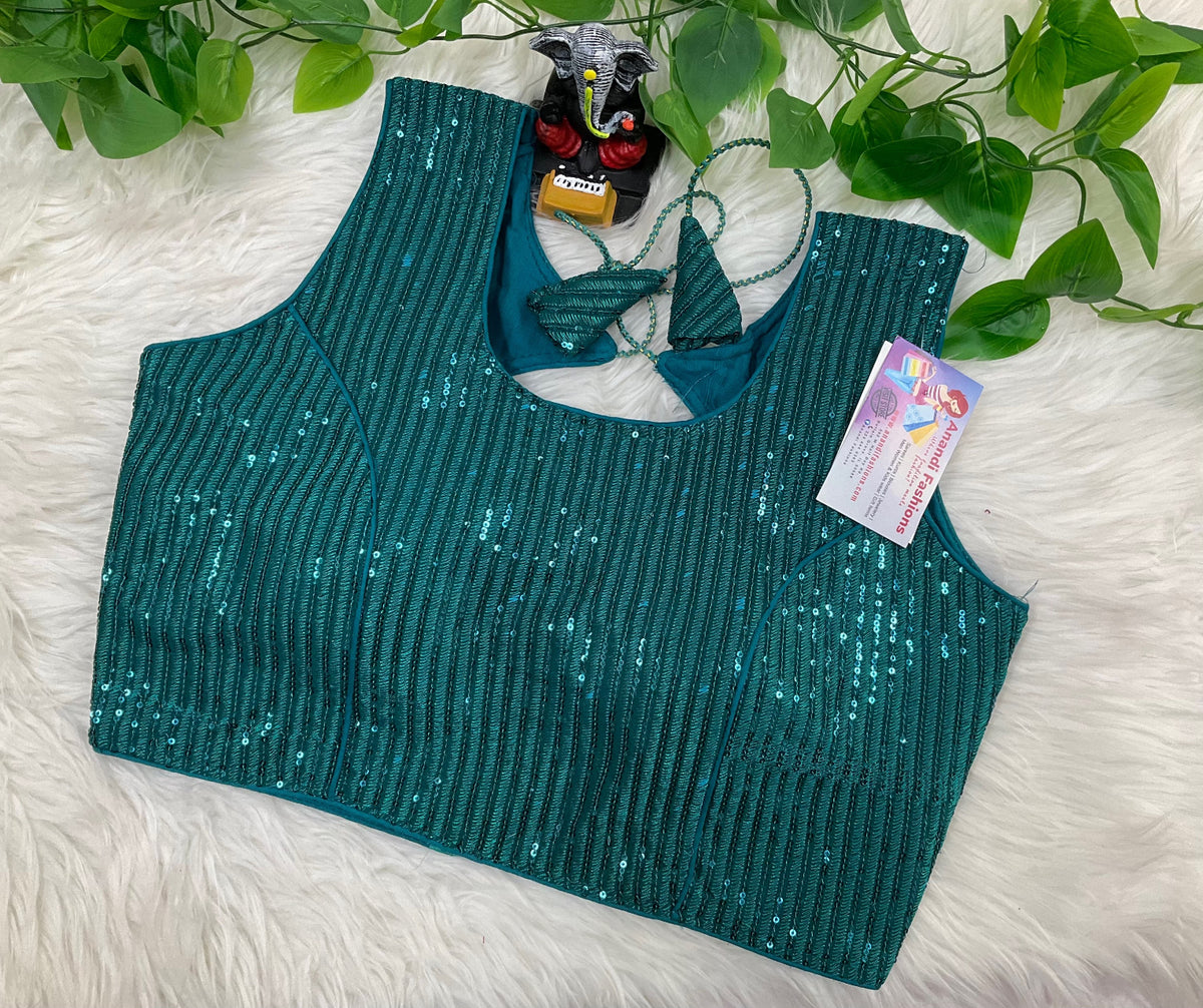 Get ready to turn heads at your next party with this stunning sleeveless blouse. This party wear sequence blouse is perfect for a special occasion and is designed to fit size 38, and can even go up to size 40. The sleeve material is attached to ensure a comfortable and elegant fit, while the length of the sleeve is 3 1/2 inches, allowing you to show off your arms while still staying classy. Whether you pair it with a skirt, trousers, or jeans, this blouse is sure to add a touch of glamour to your outfit. Don't miss out on this must-have piece for your wardrobe!