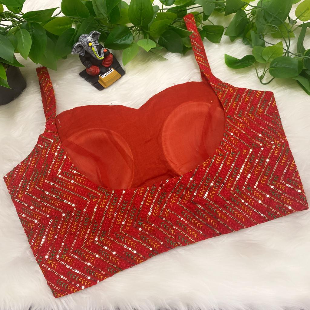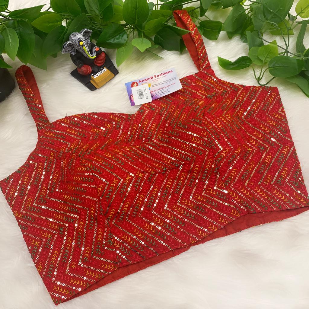 Inform when this item available Thin Strap sleeveless Red Blouse with sequence work- Size 38/40