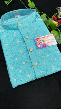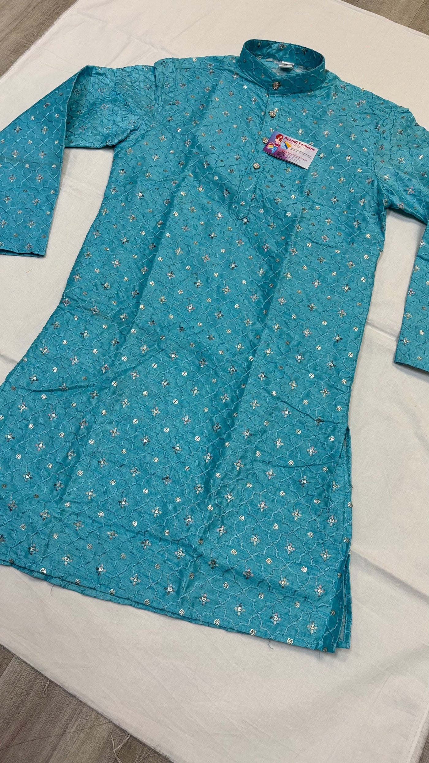 Mens Kurta - Kashmiri Silk Sequin Embroidery Work Men's Kurta - Blue / Size 36