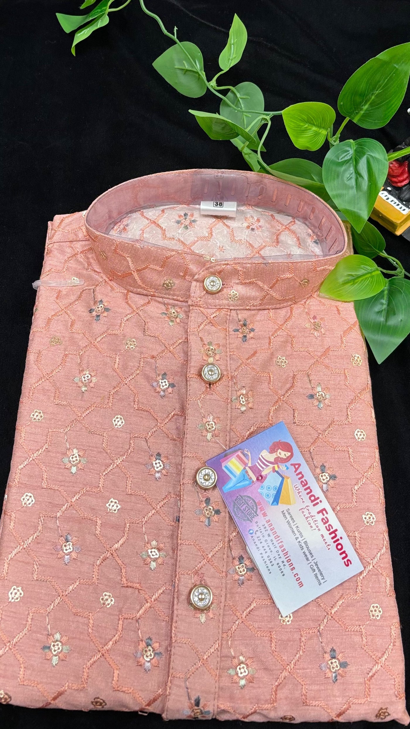Mens Kurta - Kashmiri Silk Sequin Embroidery Work Men's Kurta