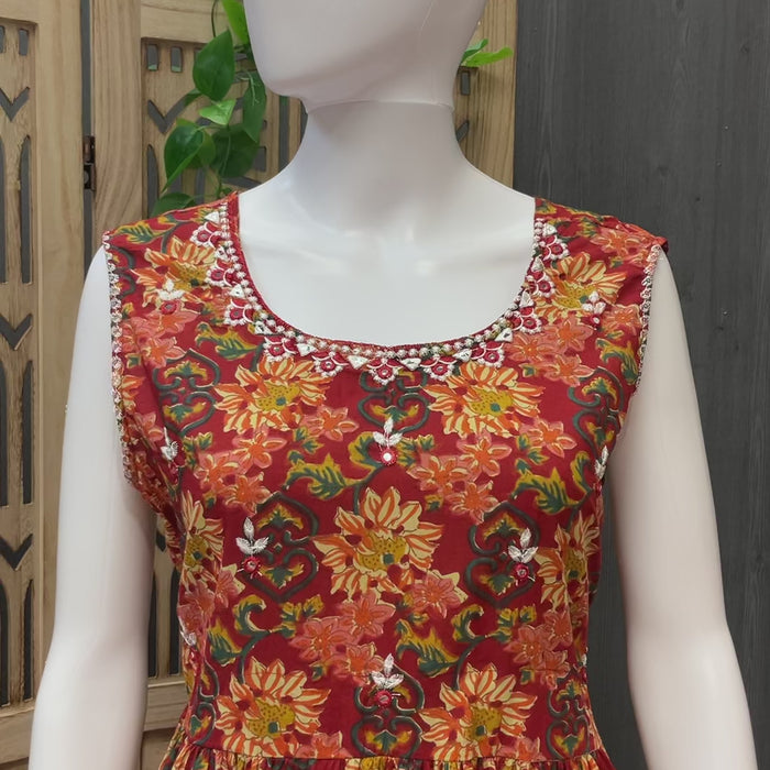 Inform when this item available Sleeveless Red Colour- Pure Cotton Summer Frock/Kurti- Size 42/44