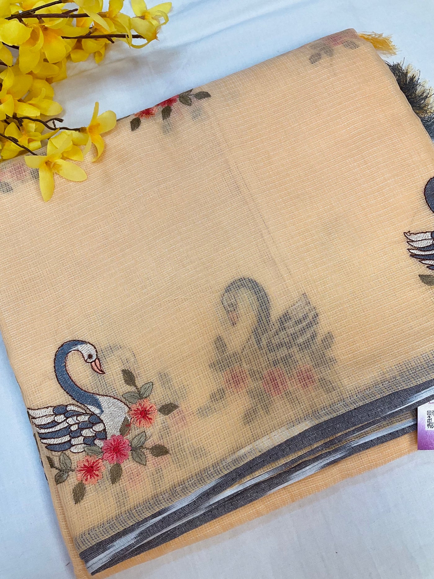 Pastel Colors Light weight Super Net sarees with swan Design.