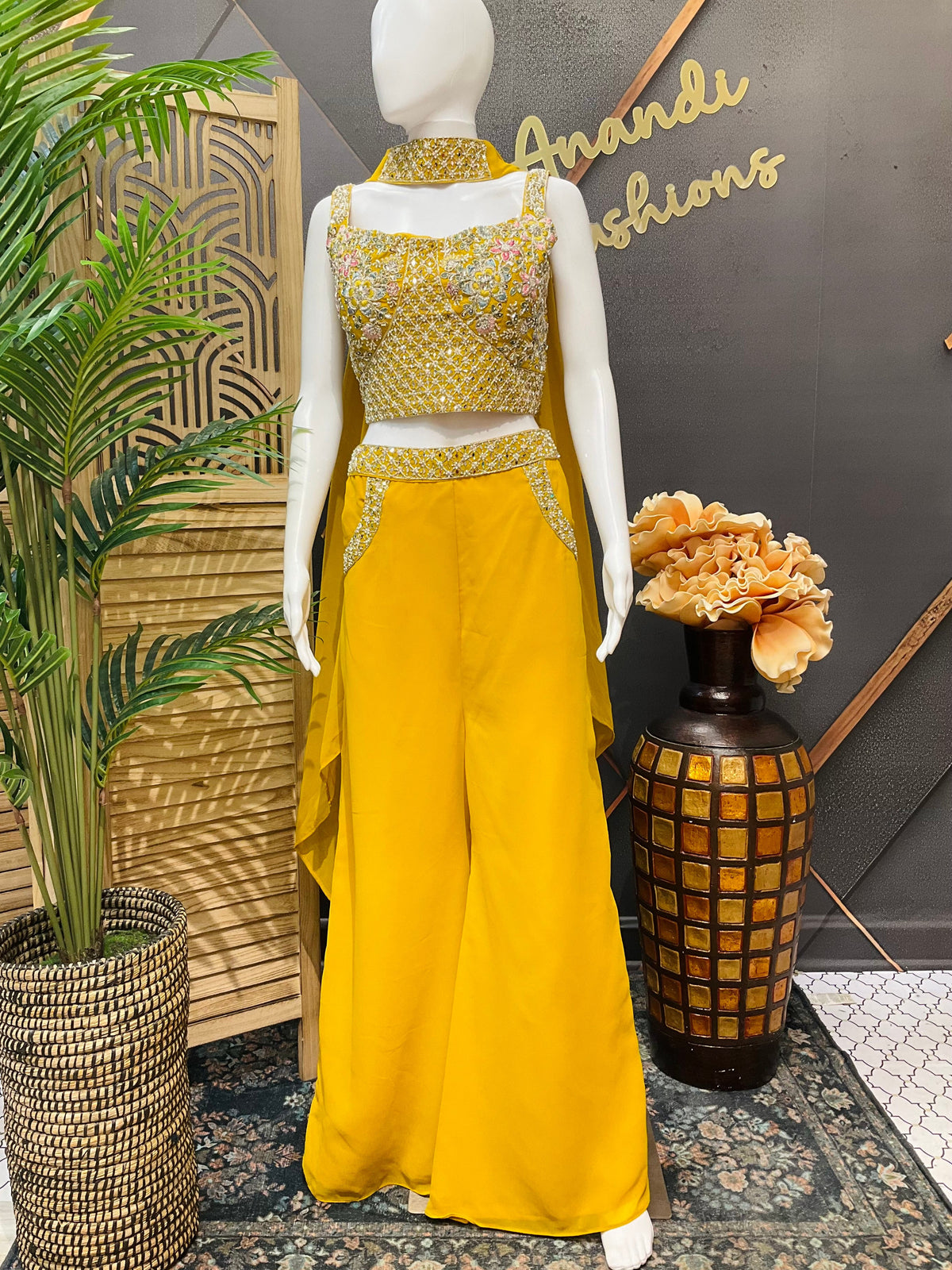 Party Wear Yellow Crop top- Sharara set - Size 36.