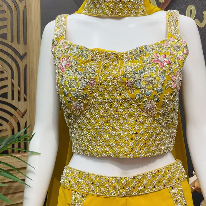 Inform when this item available Yellow - Party Wear Crop Top - Sharara Set