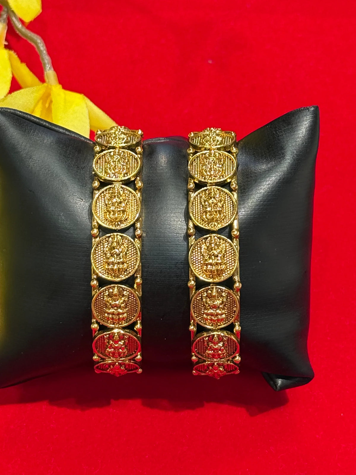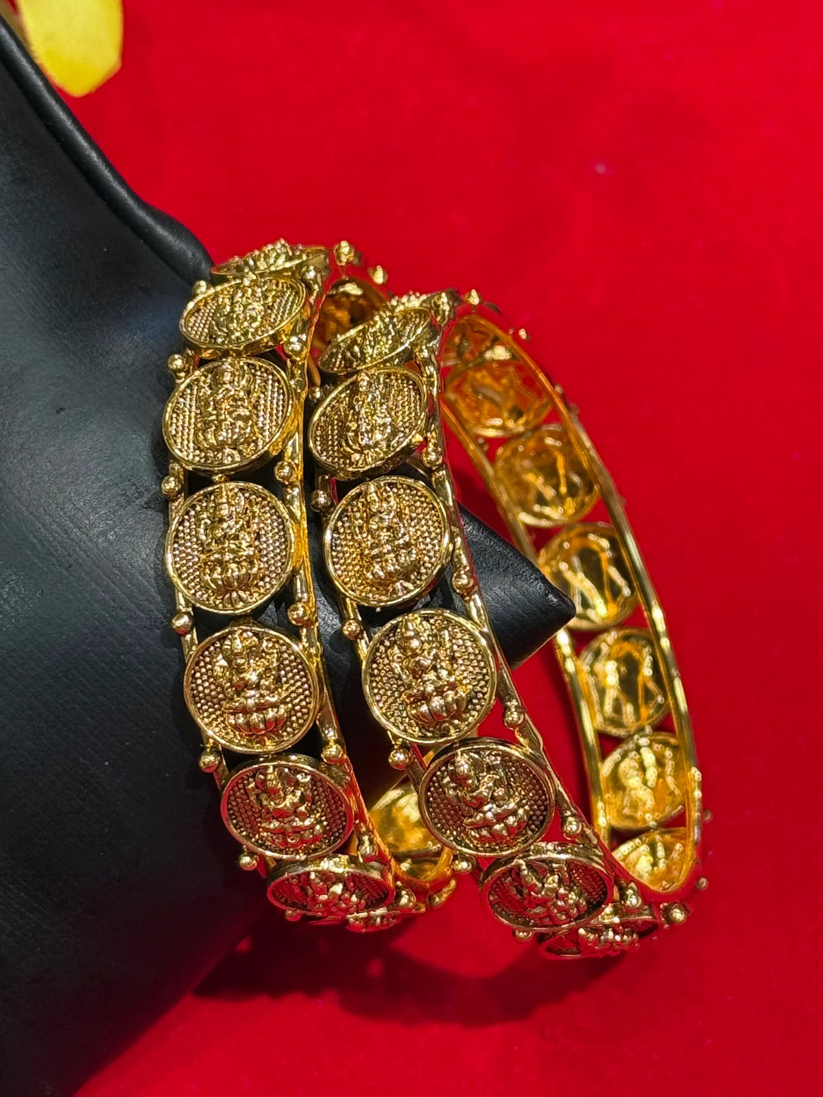Antique Finish Goddess Lakshmi Bangles Set - Pair of 2 Traditional Bangles