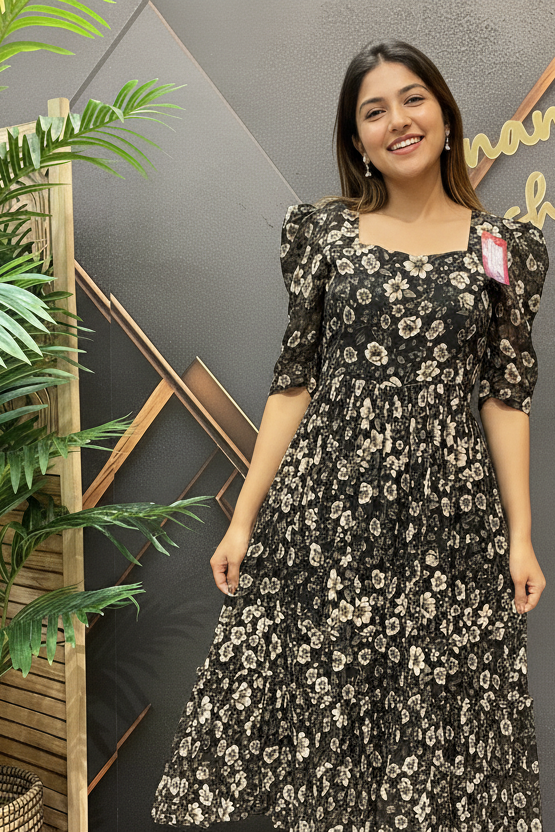 Step into timeless elegance with this stunning Black Designer Gown, a breathtaking fusion of traditional Indian artistry and contemporary sophistication. This elegant Anarkali ethnic frock features exquisite craftsmanship and luxurious detailing, making it the perfect choice for weddings, receptions, and grand celebrations where you want to make an unforgettable impression.