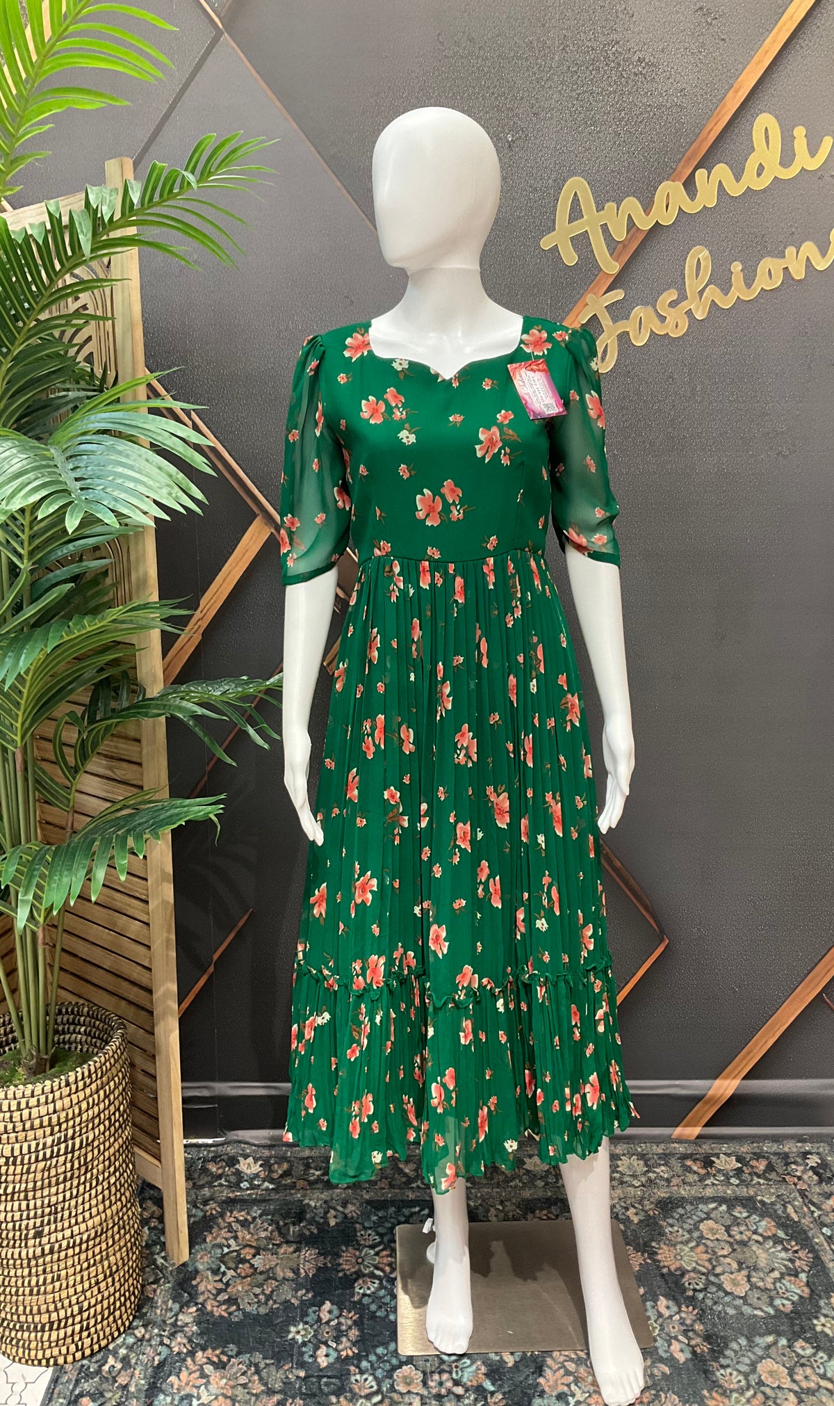 - Rich teal green hue with intricate embroidery and embellishments