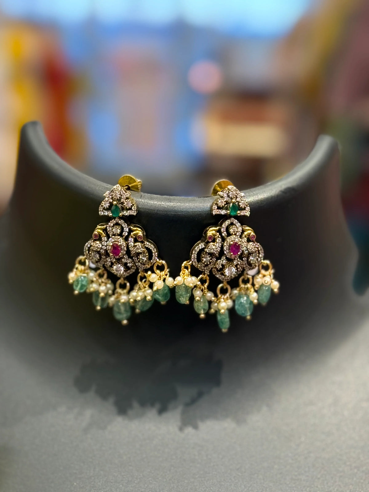 Elegant Victorian necklace set featuring beautiful peacock design pendant with Monalisa beads. Traditional Indian jewelry perfect for weddings, parties, and festive occasions. Premium quality craftsmanship with intricate detailing.