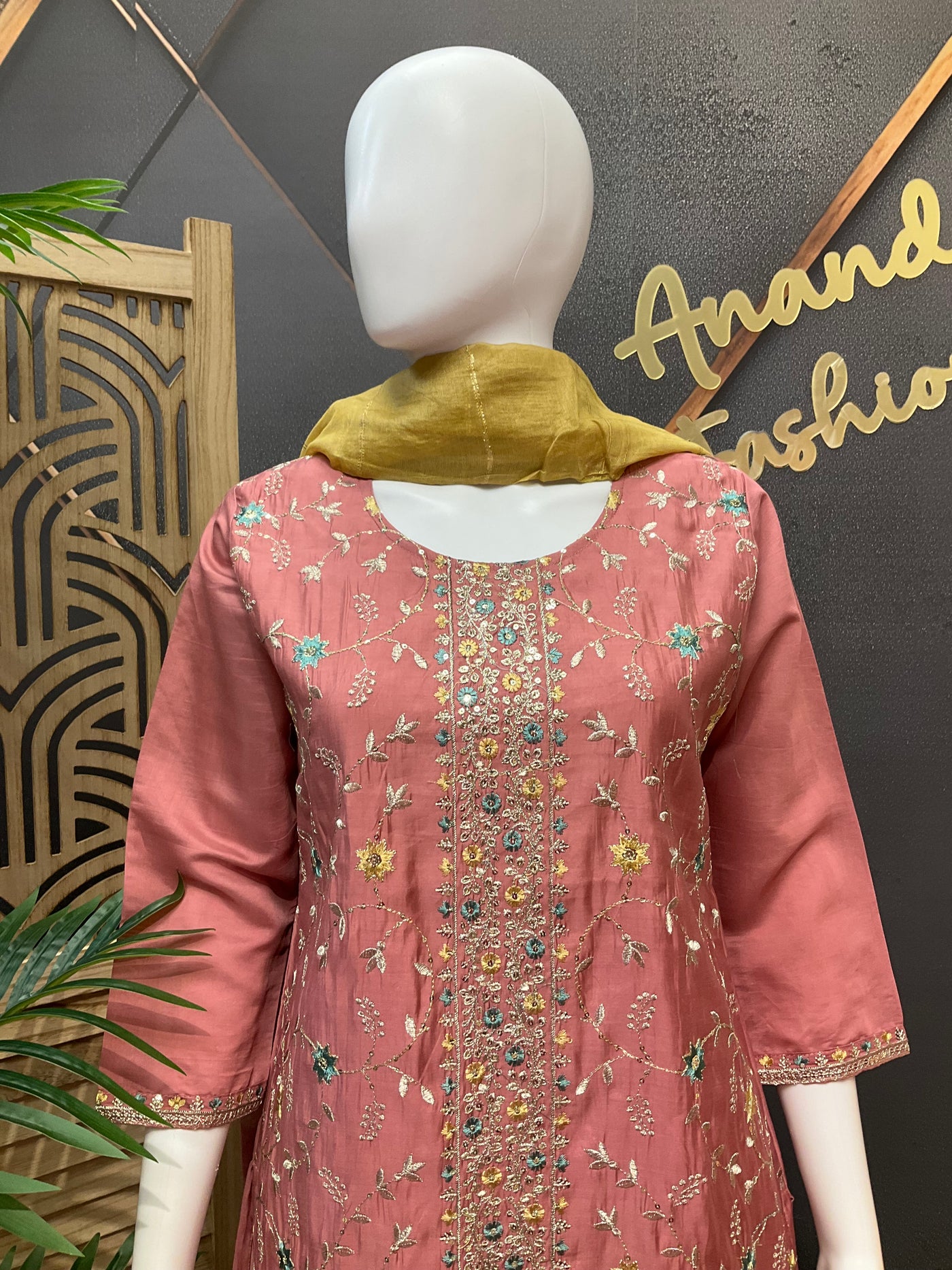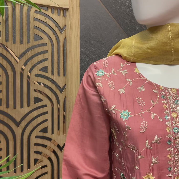 Onion Pink - Embroidery work Kurti set with dual tone dupatta.