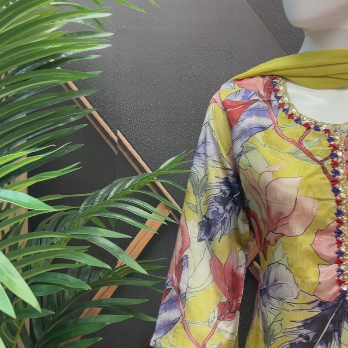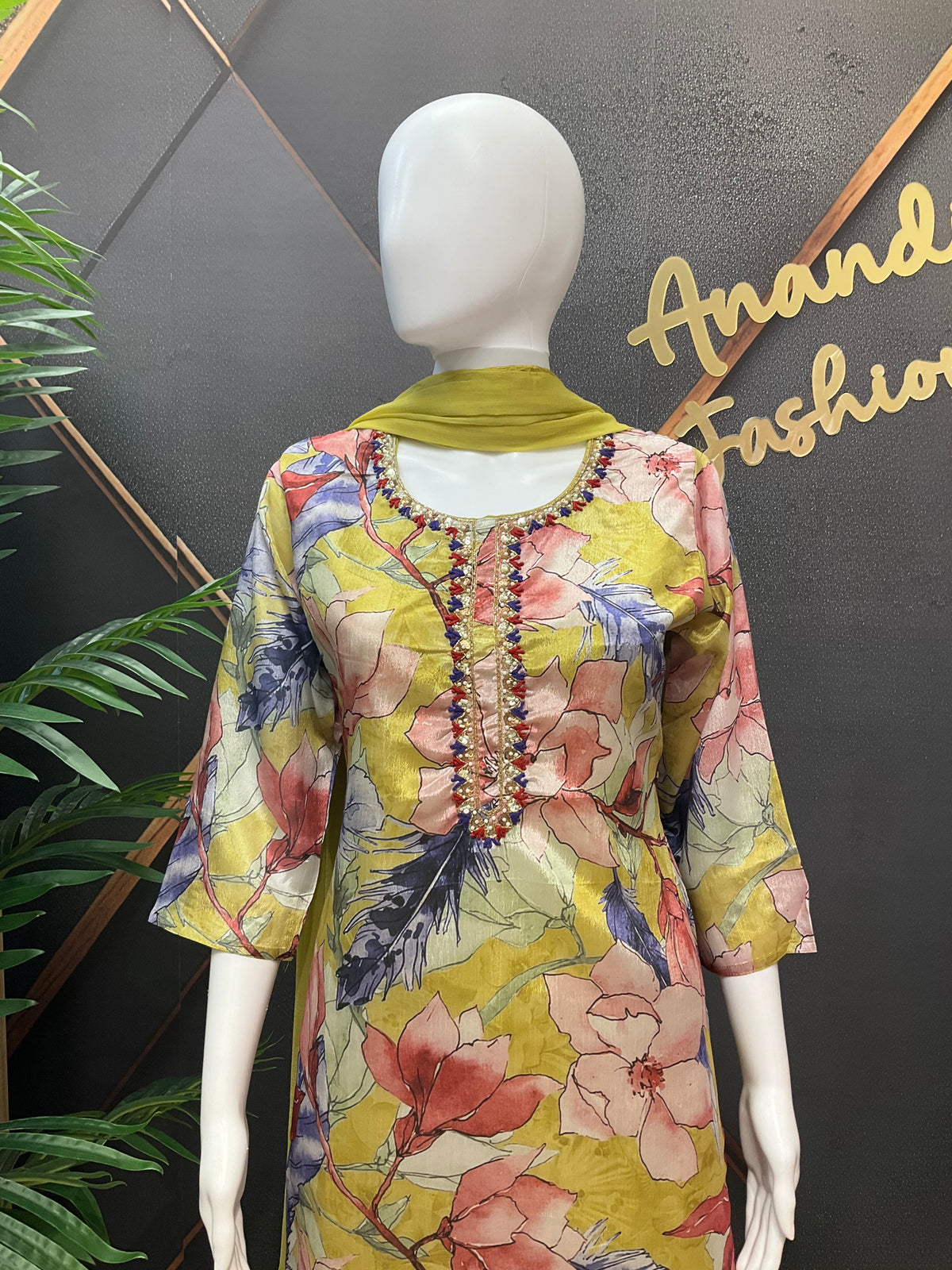 Floral Pattern - Satin Silk Kurti set - Size 38/US XSmall