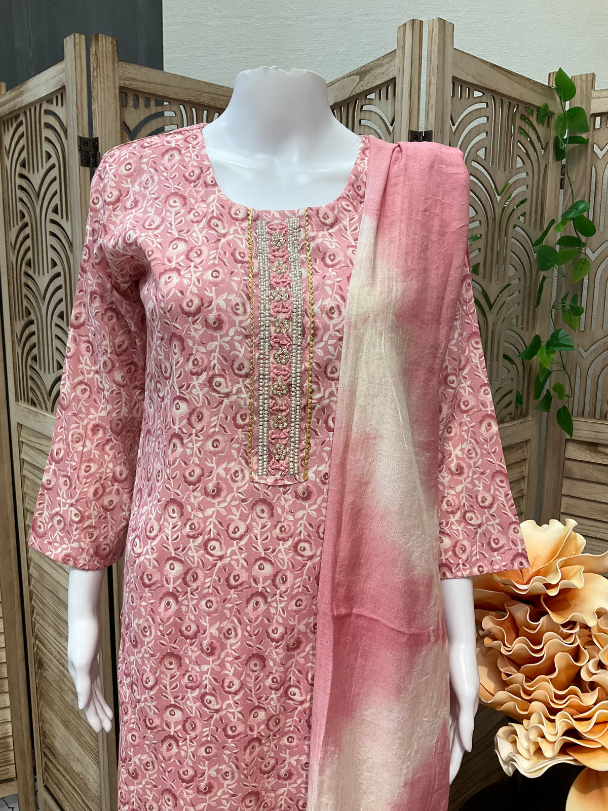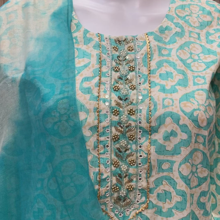 Inform when this item available Plus Size - Pure Cotton Kurti set with bead embroidery work