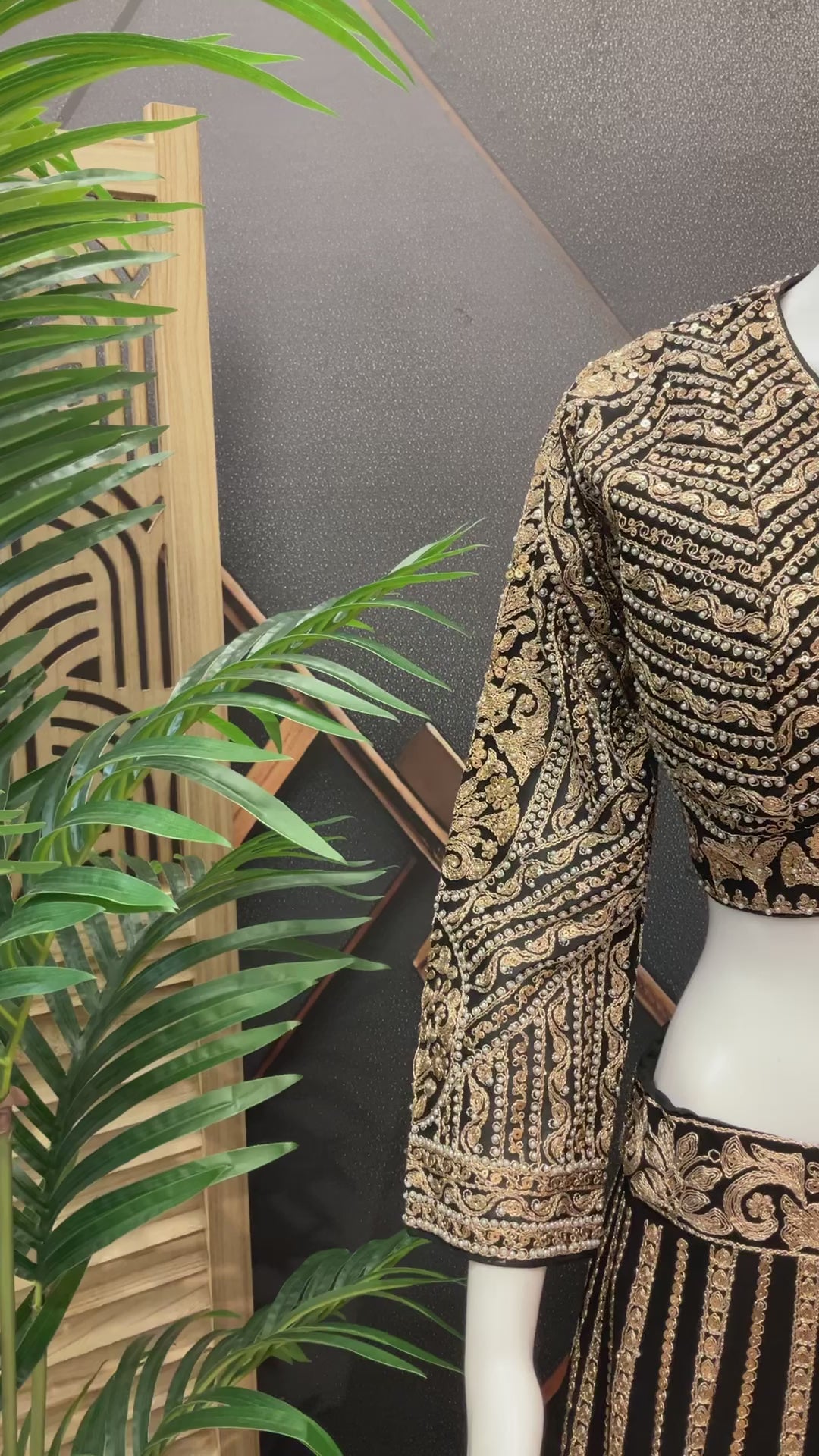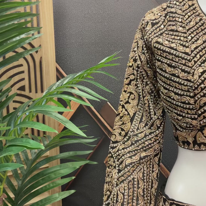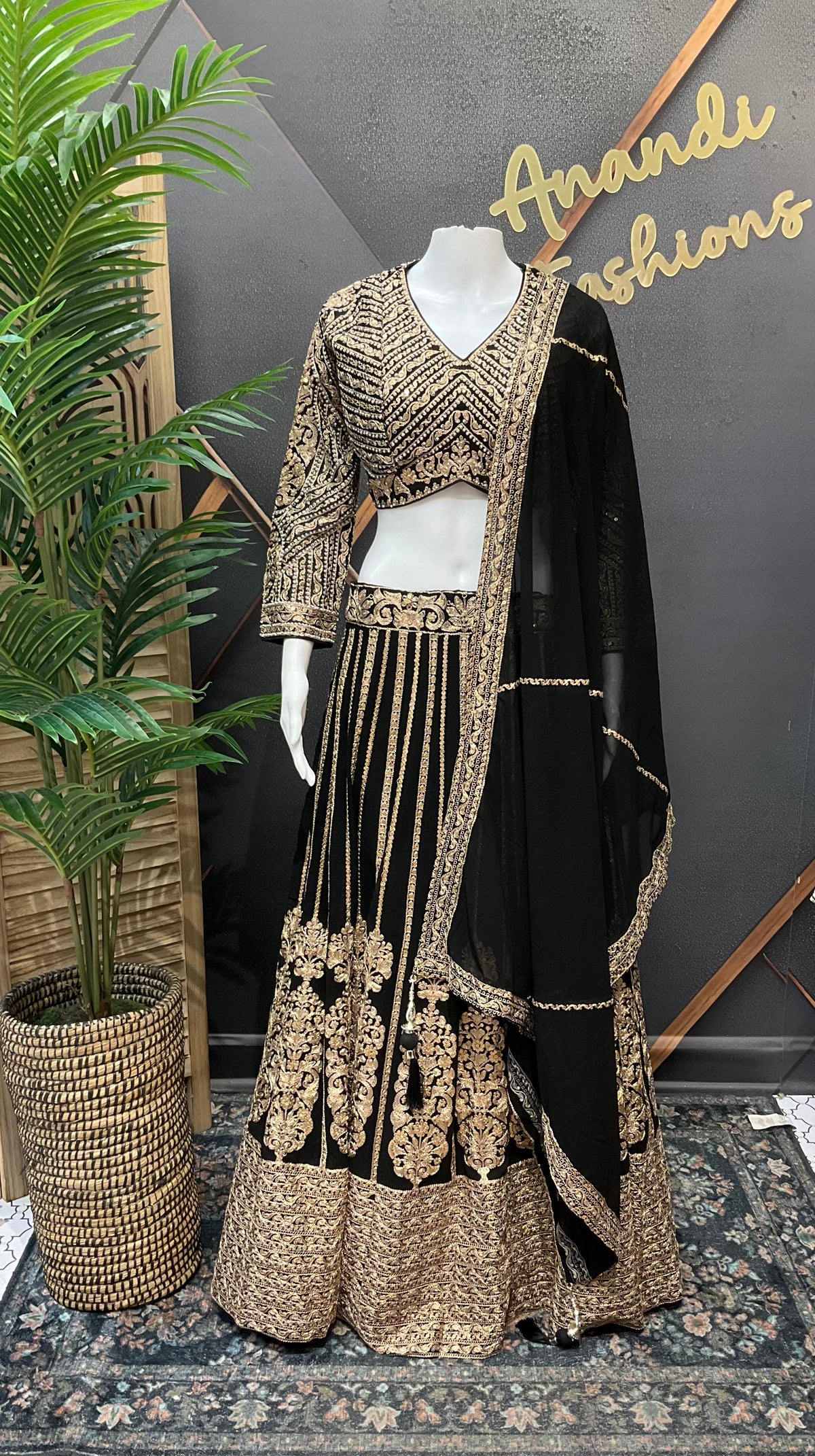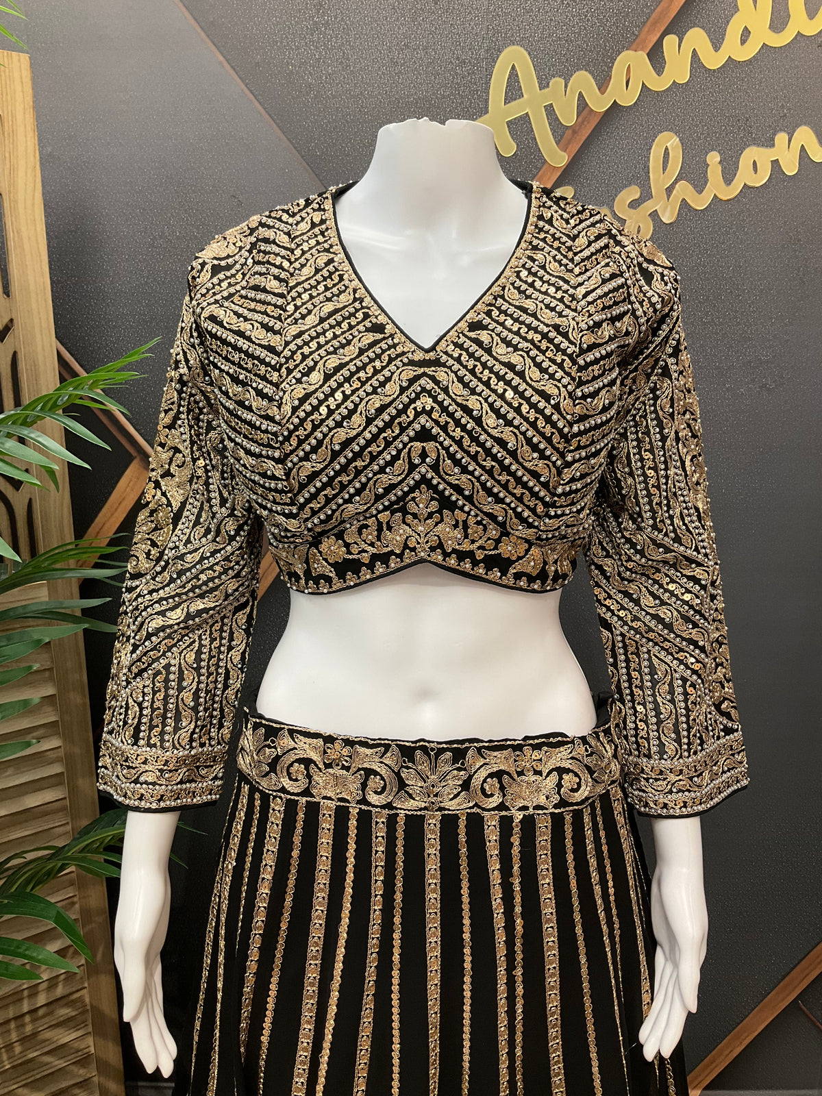 Black - Heavy Work Designer Lehenga set- Georgette - Size 38