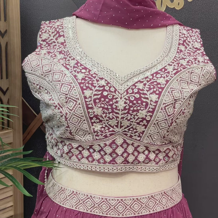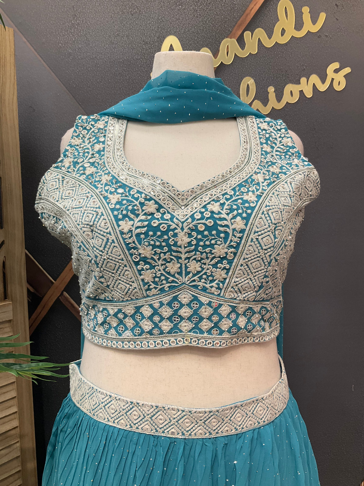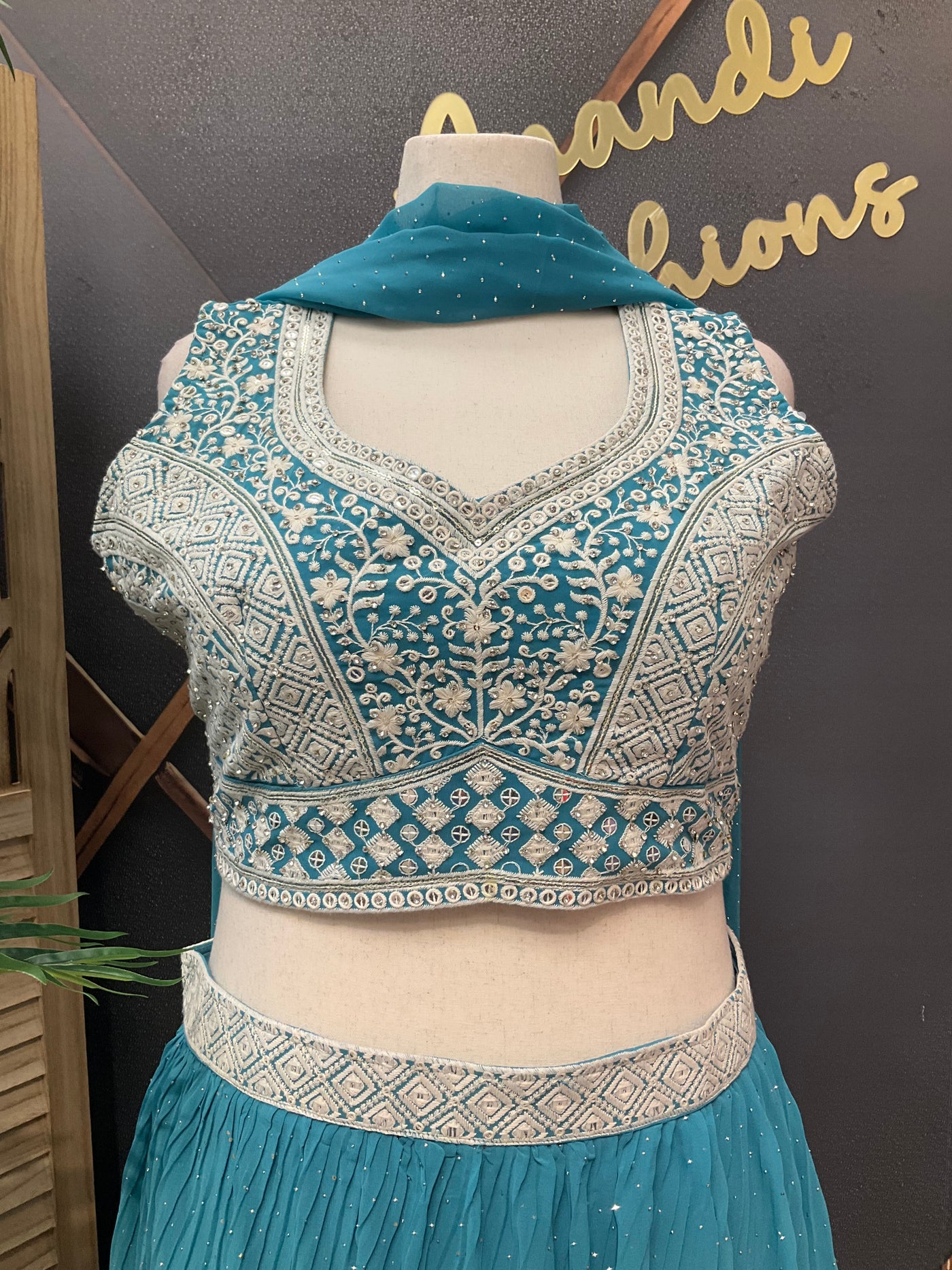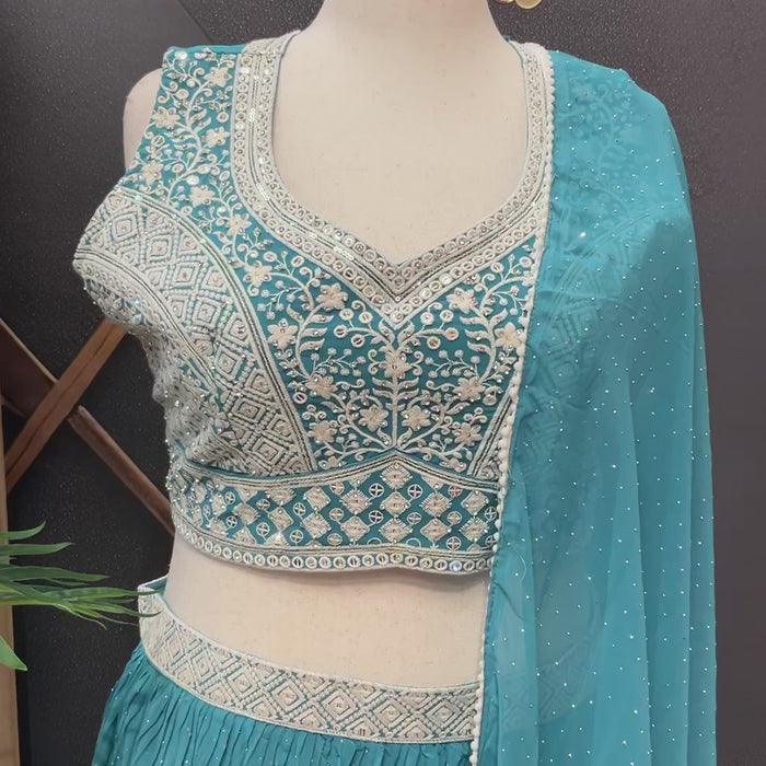 Georgette Lehenga set with white thread work on Both sides of the Lehenga.