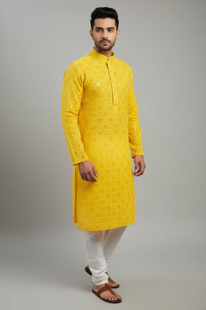 Inform when this item available Size 40 -Yellow Sequence chikankari Mens kurta set