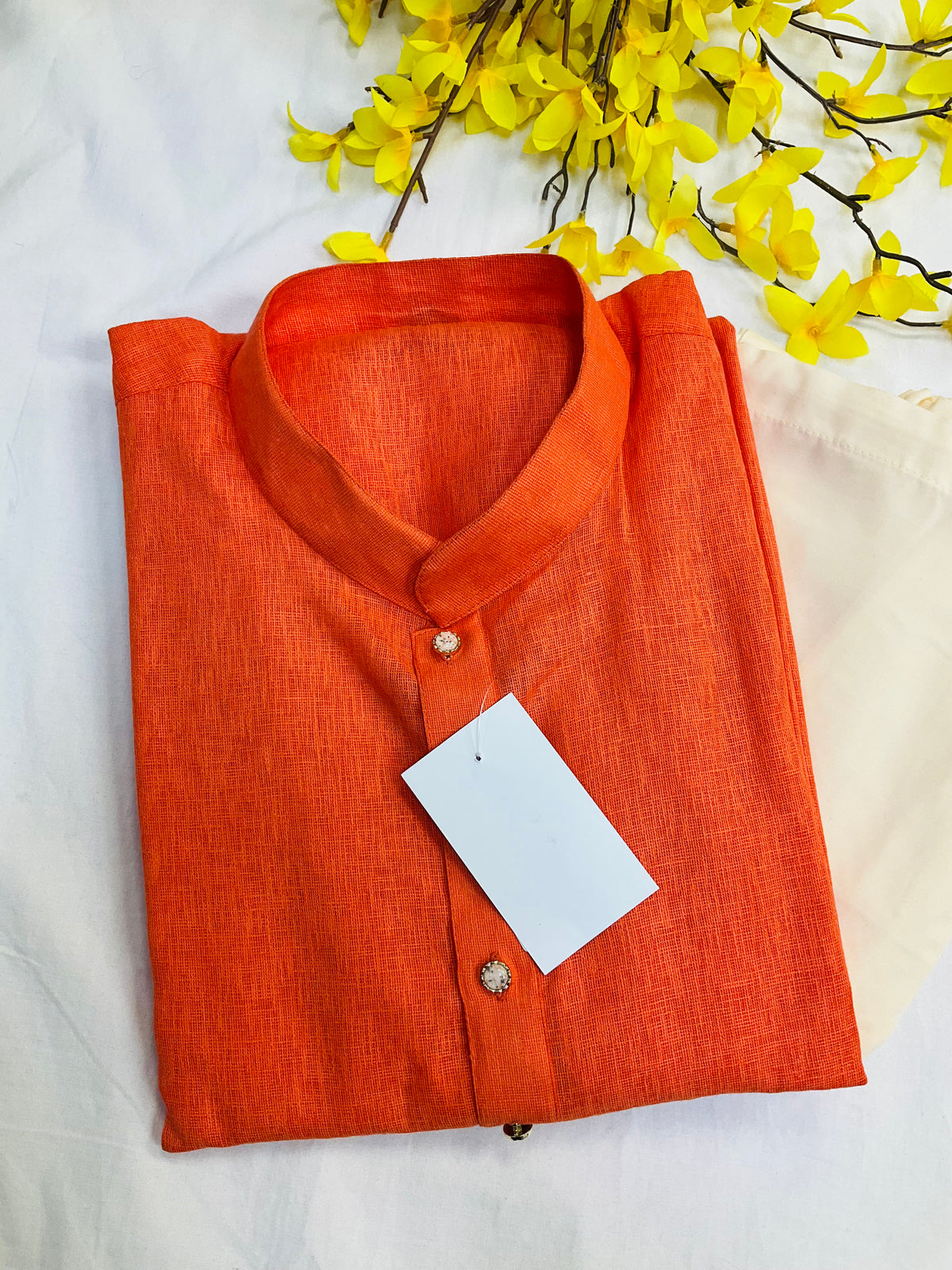 Inform when this item available Plus size 50- orange cotton kurta set for men