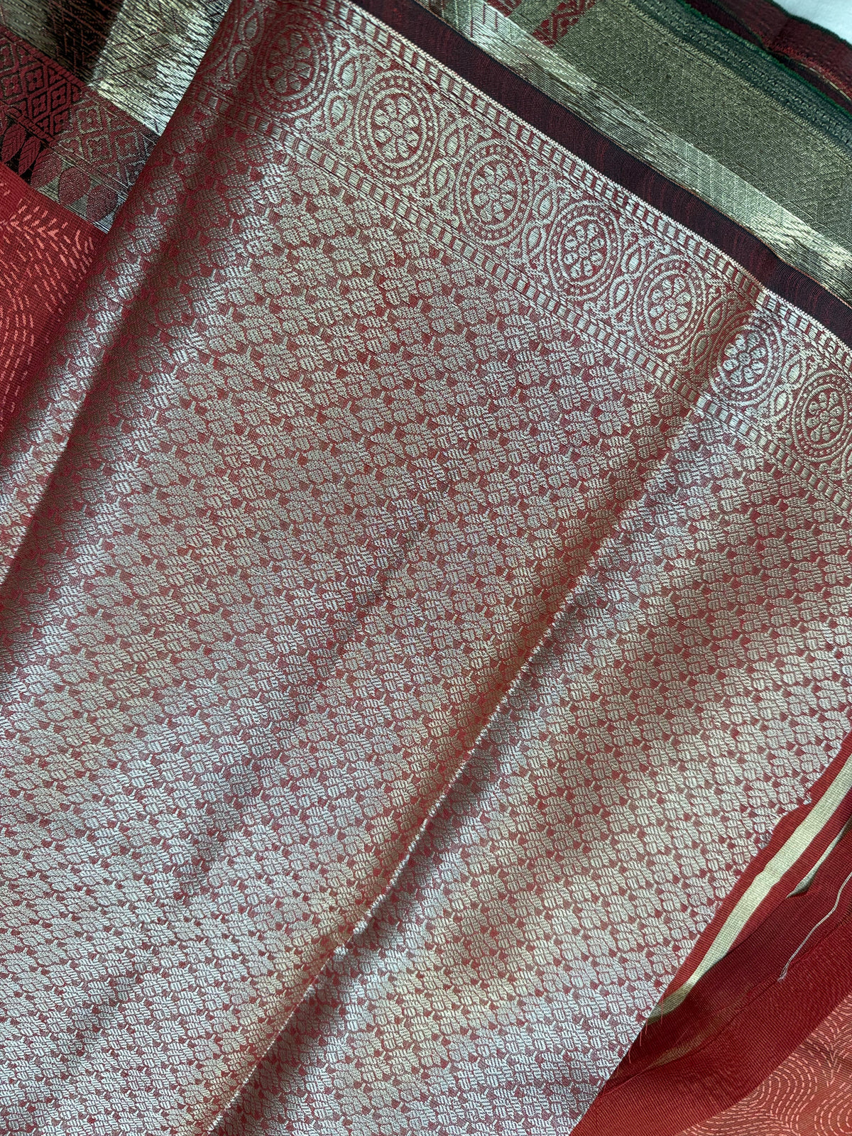 Fancy Print Saree with Border and tissue Gold Pallu.