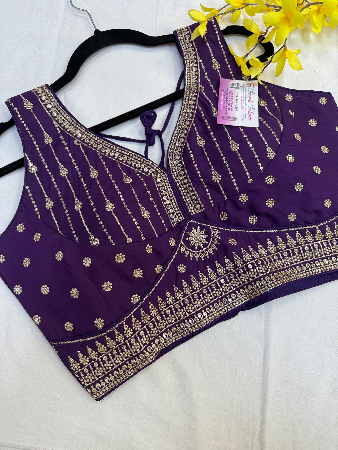 Back Opening-Fancy Work Blouses with Gold Zari Work.