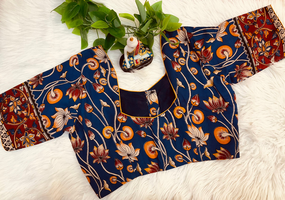 Pure Cotton Purple Color Cotton Kalamkari Blouse- Front Opening - Size 38(fits upto 42)