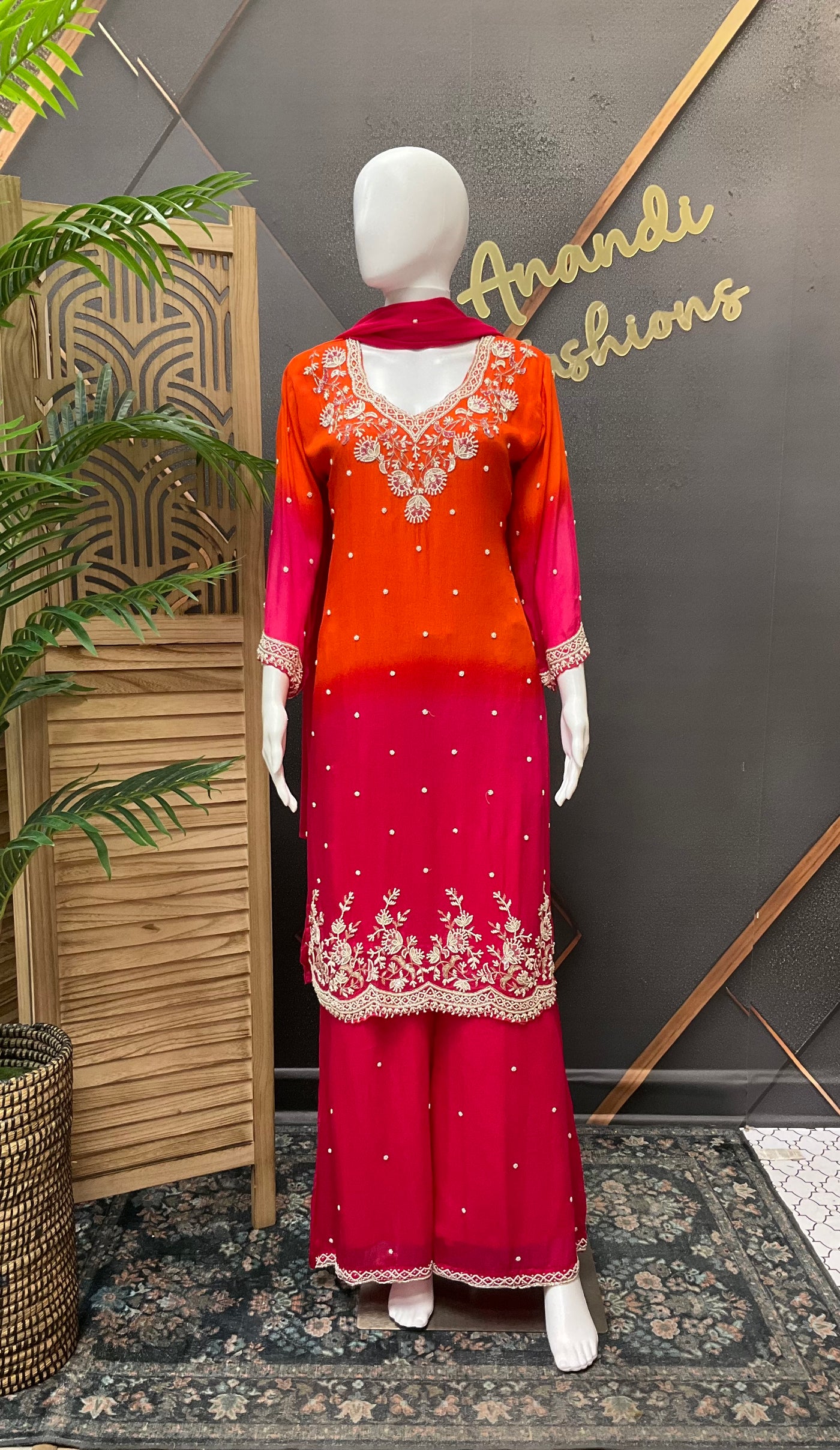 Inform when this item available Designer Sharara set - Orange & Pink