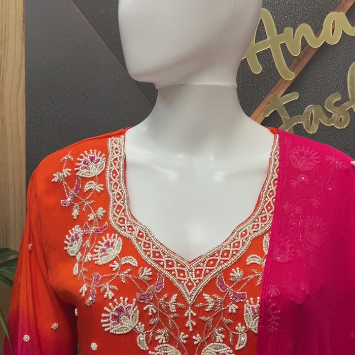 Orange & Pink Combination- Designer Crape Silk Sharara set with Pearl Embroidery work.