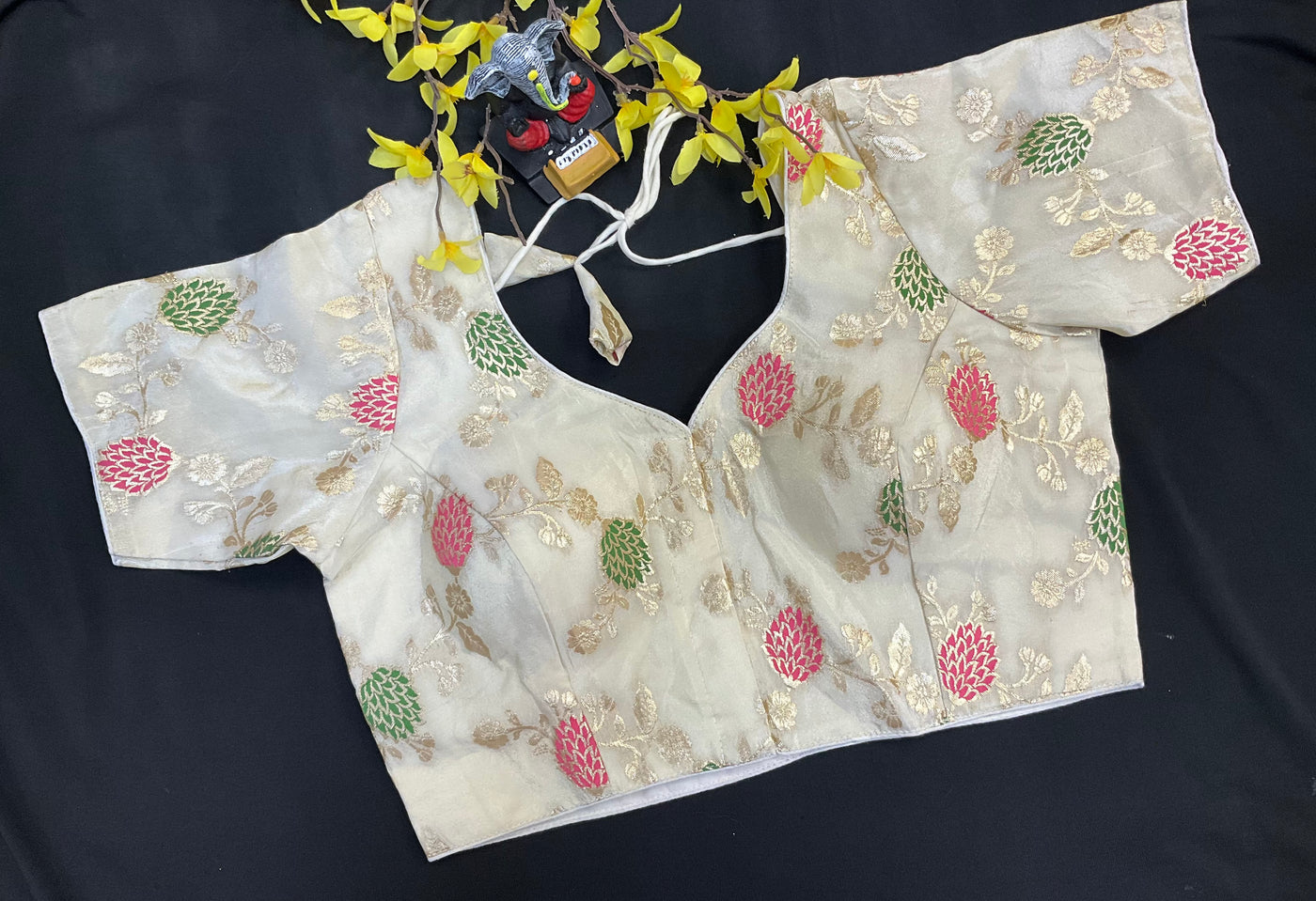 Front opening Tissue Blouse with Floral Gold Print.