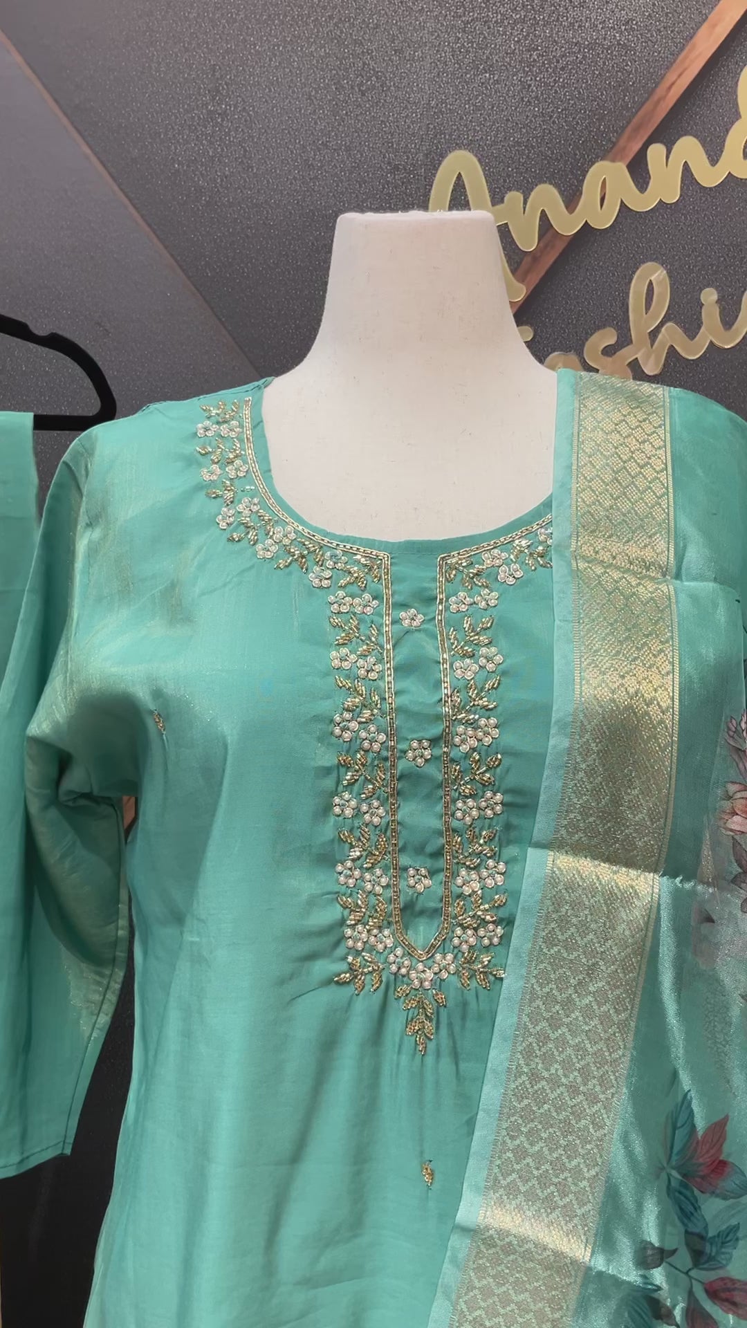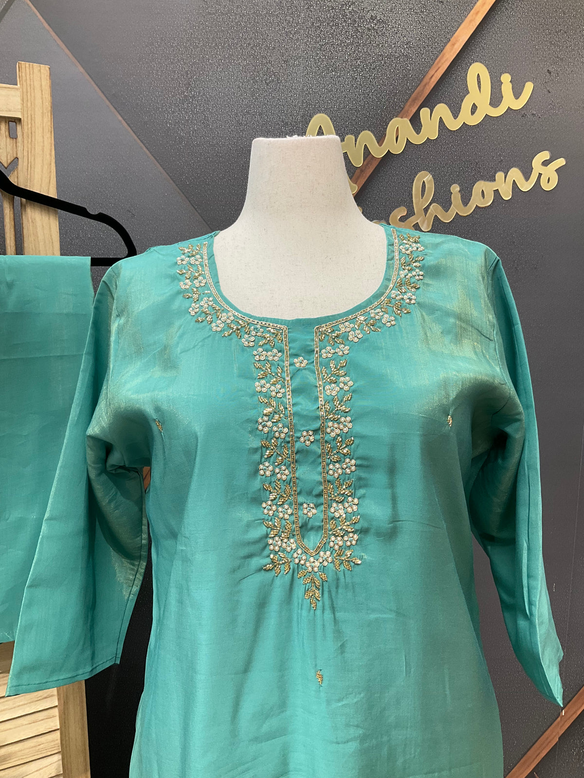 Inform when this item available Plus Size - Aqua Green- Shimmery Tissue Party Wear Kurti Set