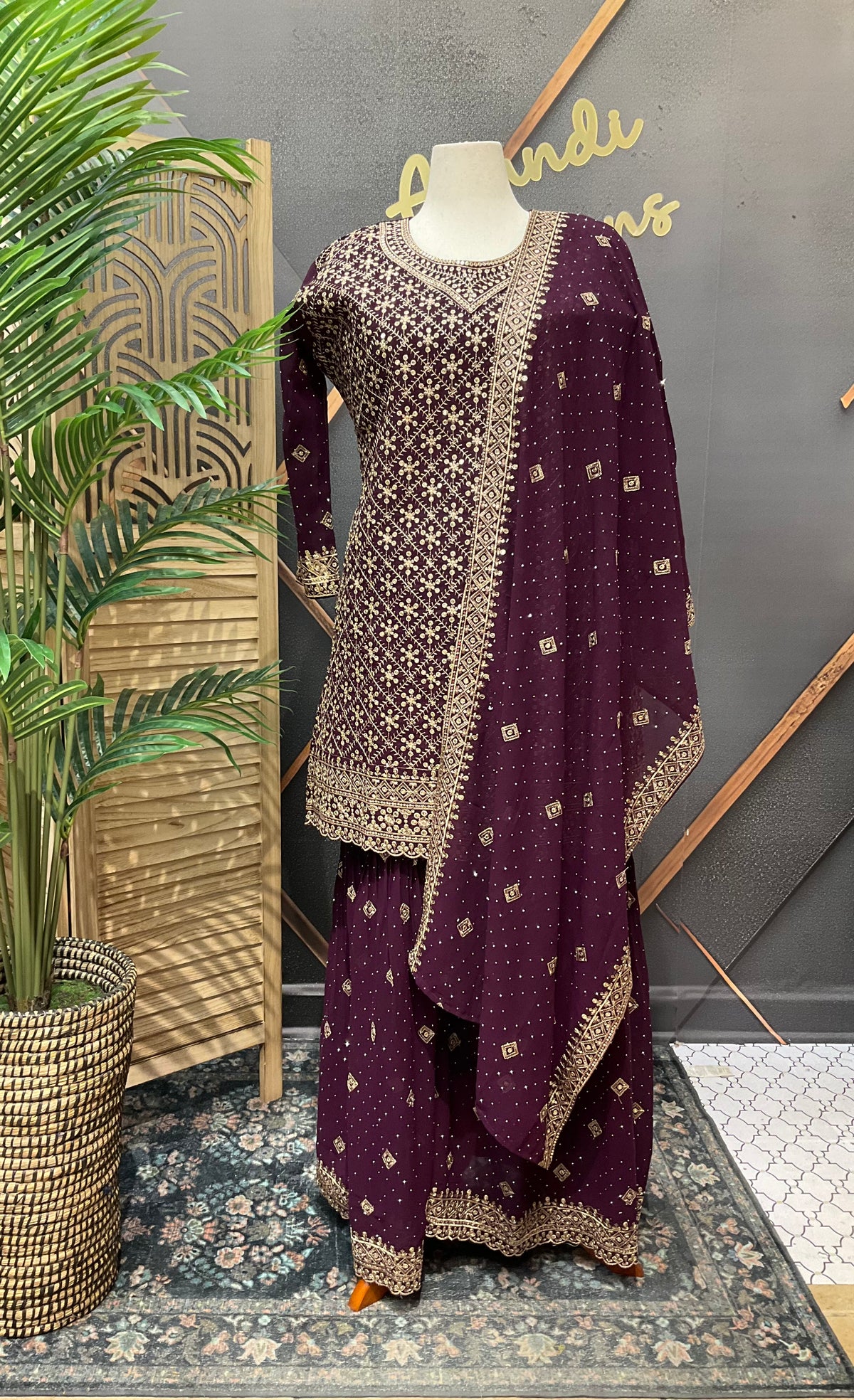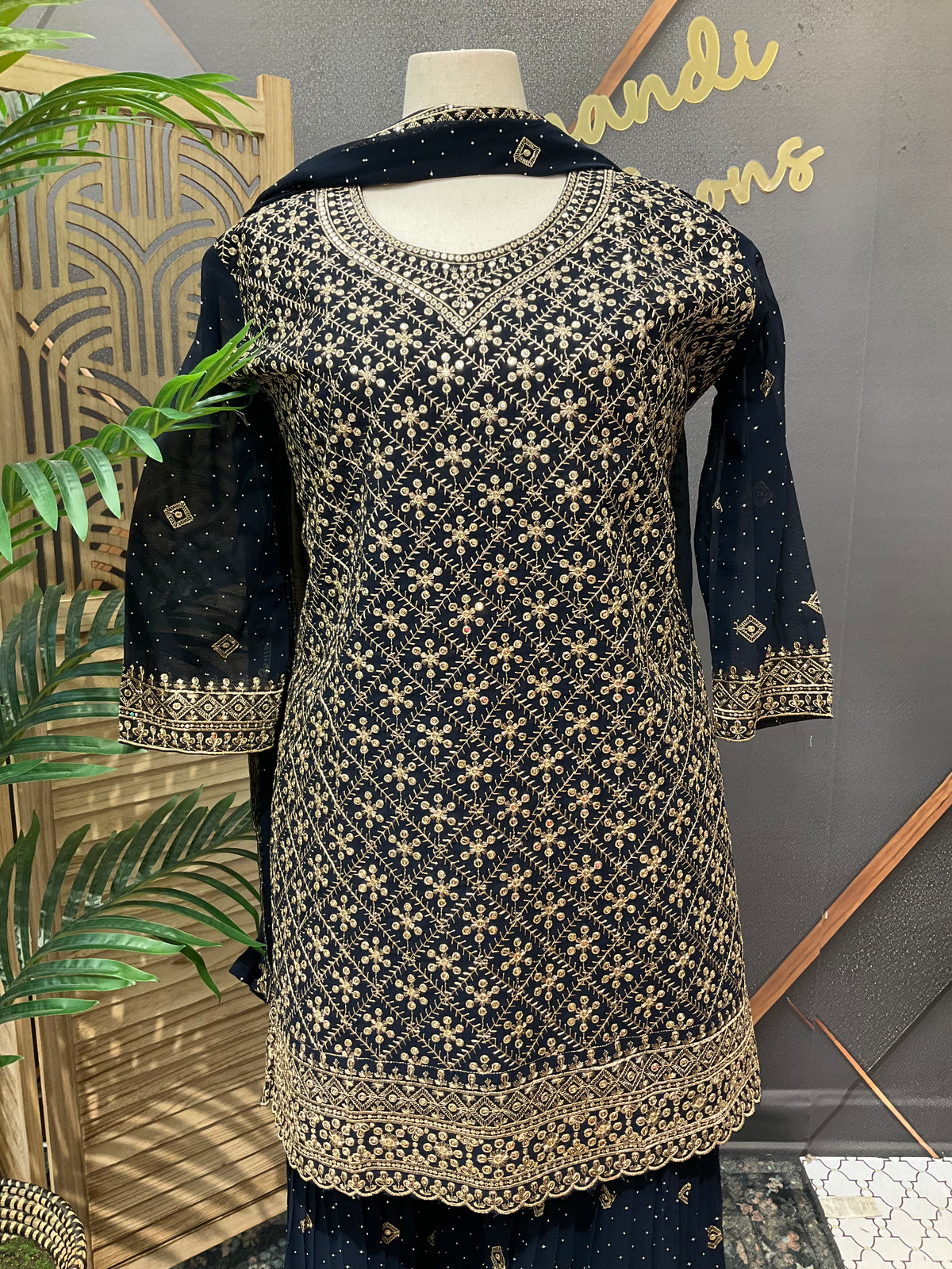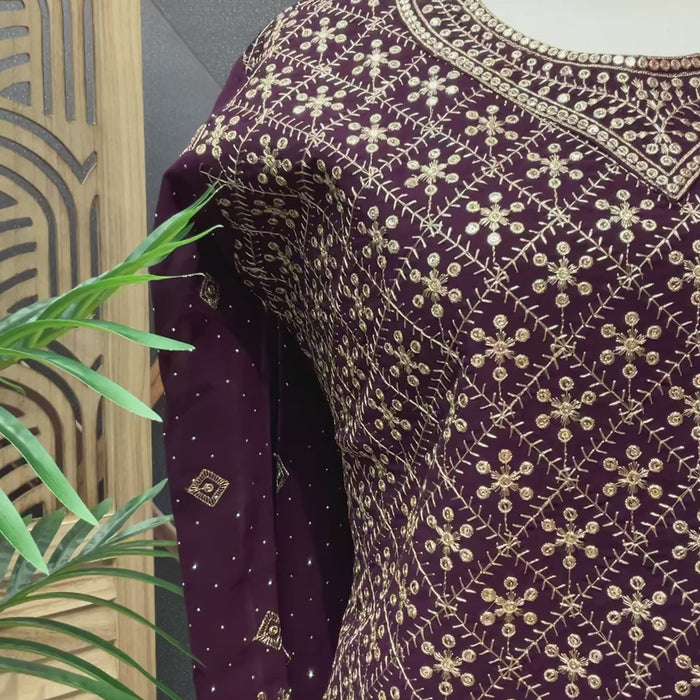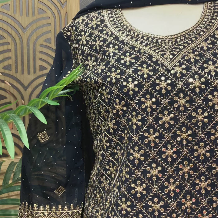 Plus Size Georgette Party Wear Sharara sets with Gold Zari Thread work.