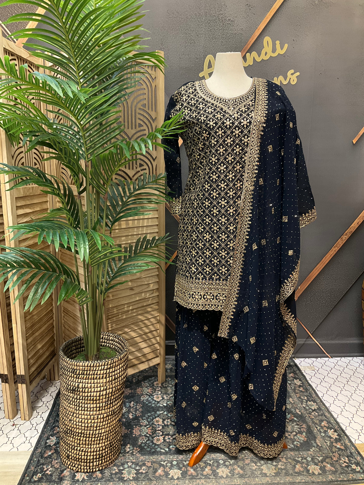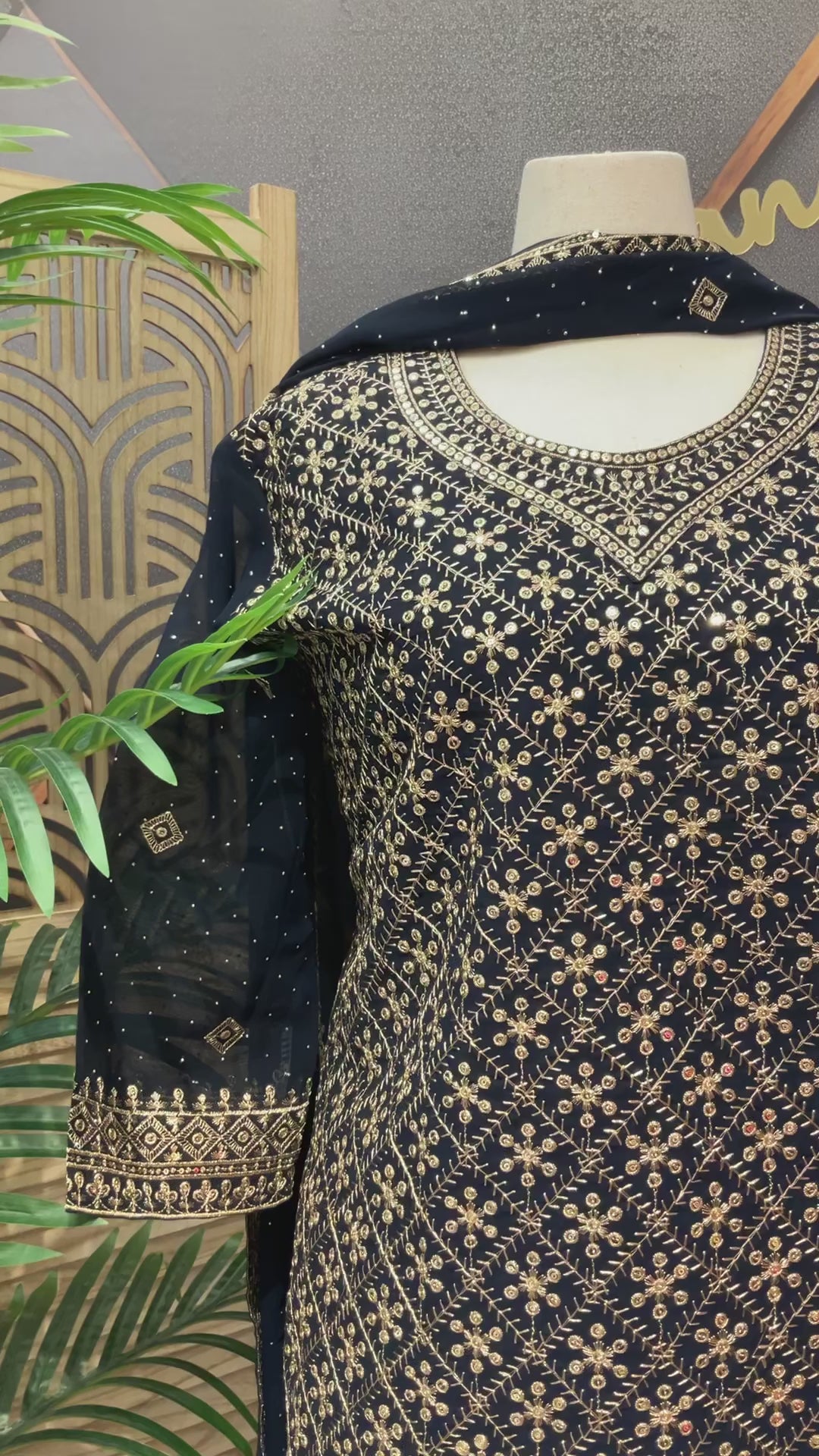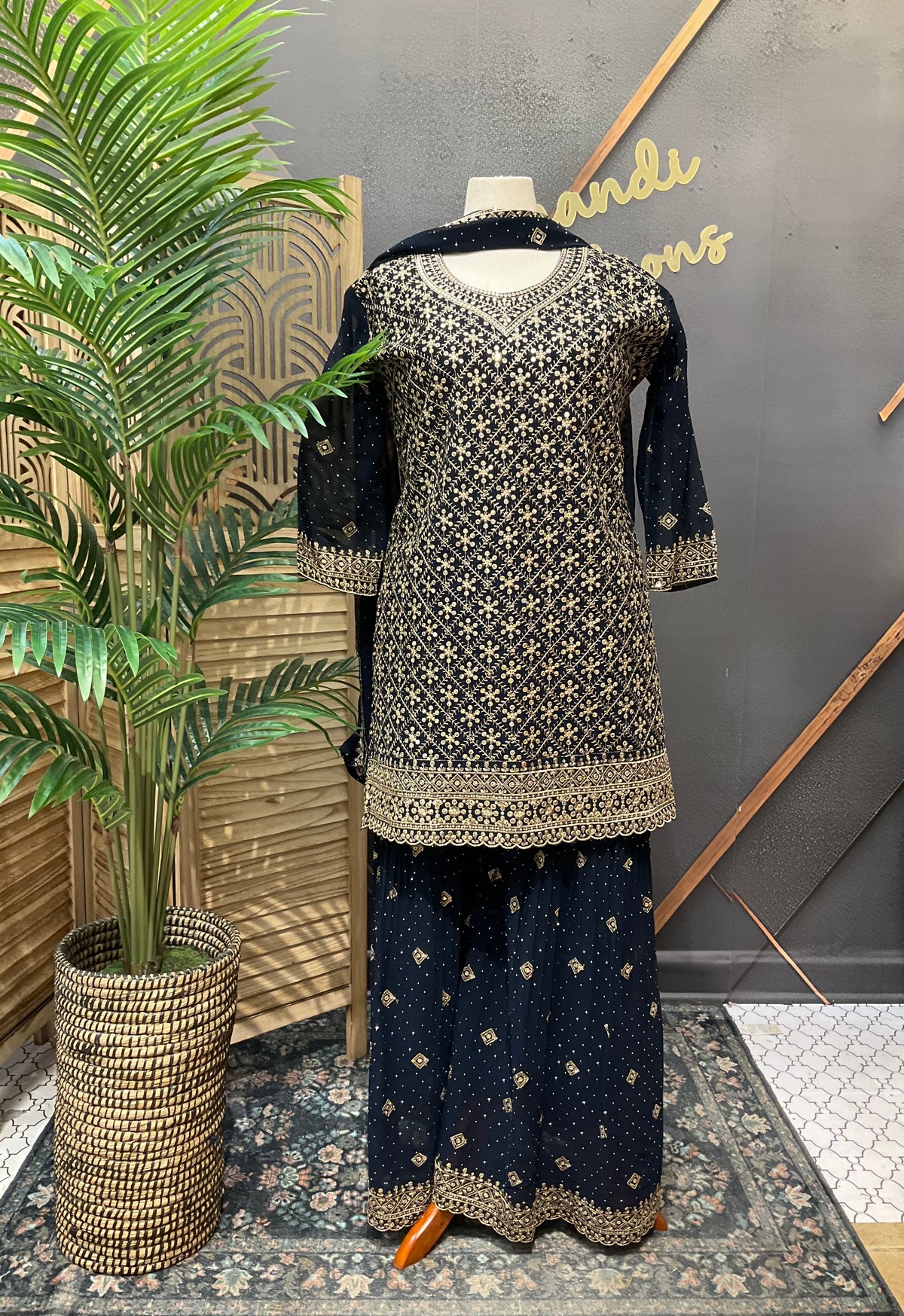 Plus Size Georgette Party Wear Sharara sets with Gold Zari Thread work.