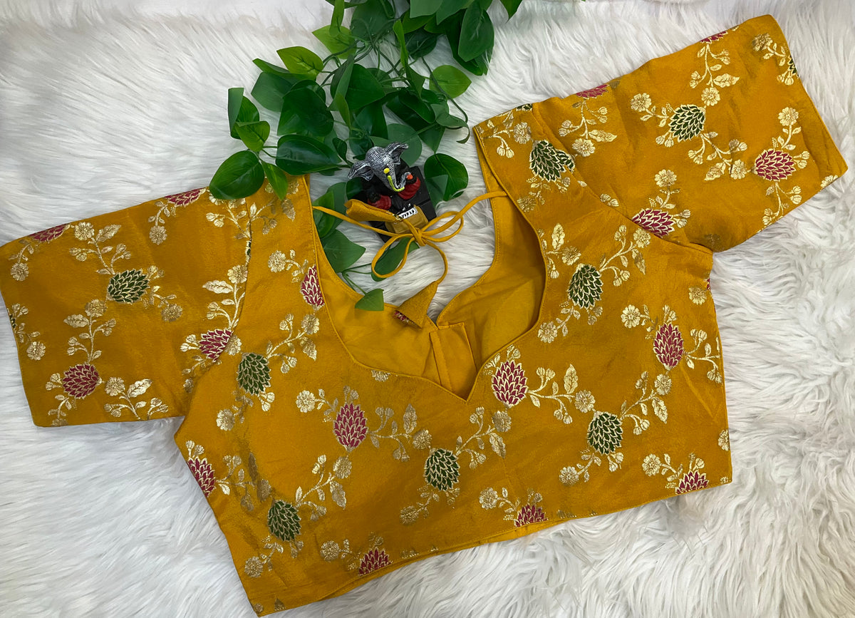 Yellow Tissue Front Opening Blouse with Print.