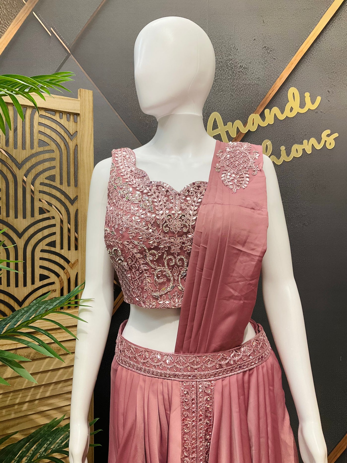 Ready to Wear Saree with Overcoat - Size 36 / Onion Pink