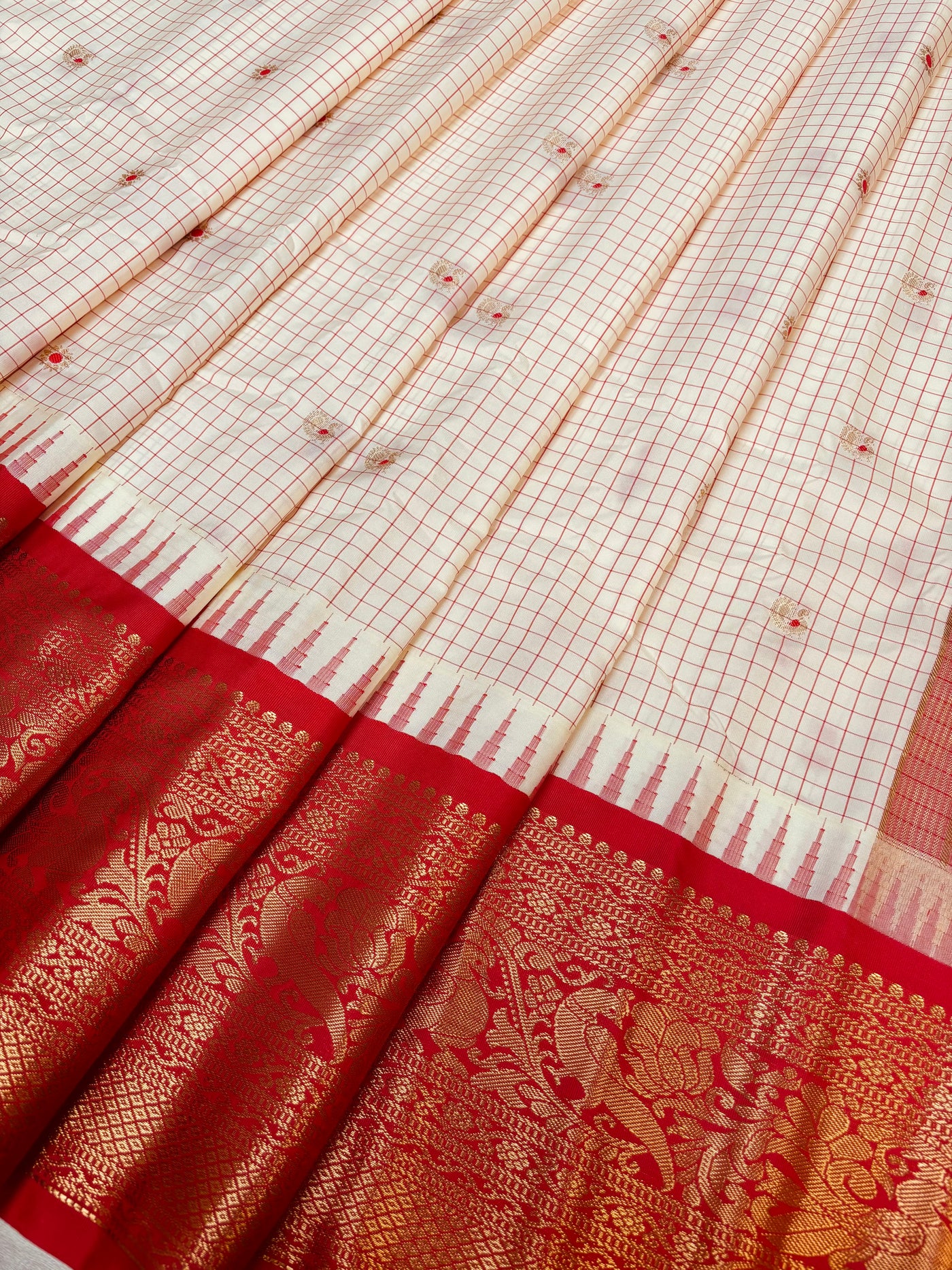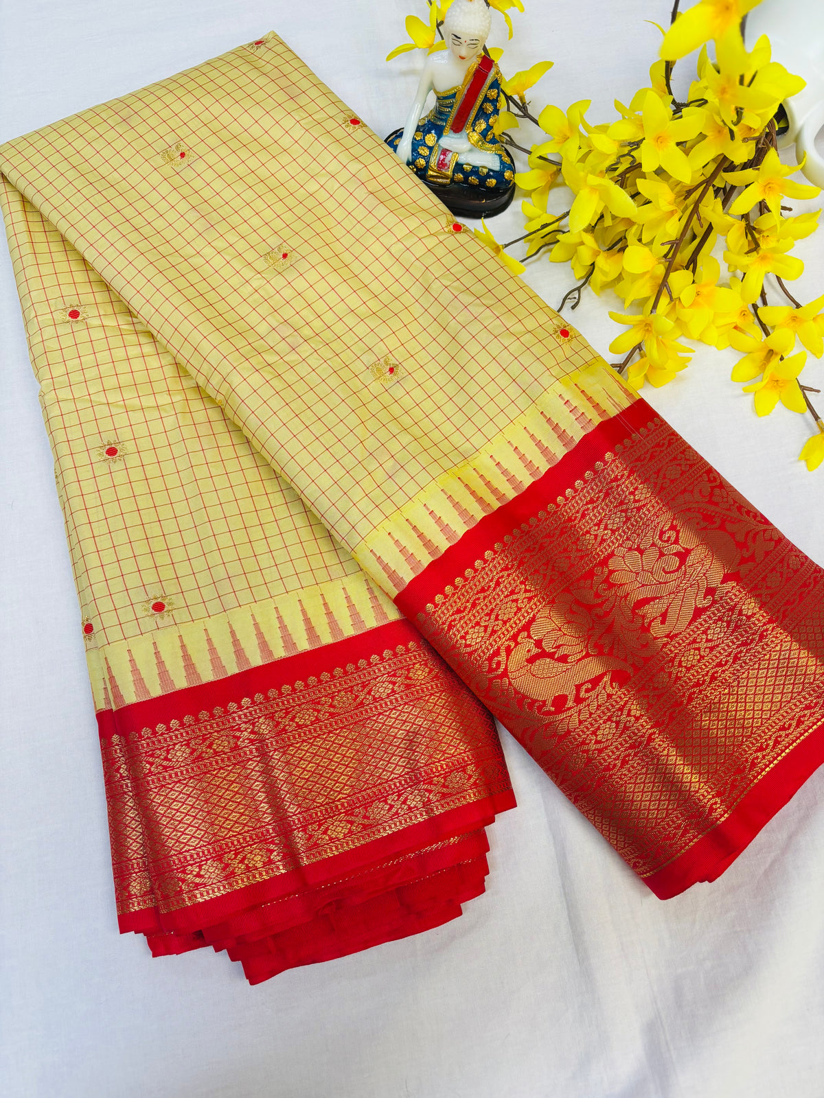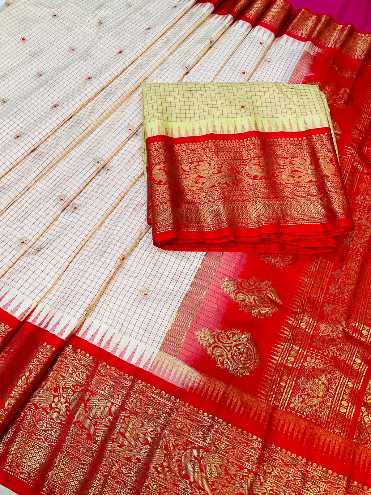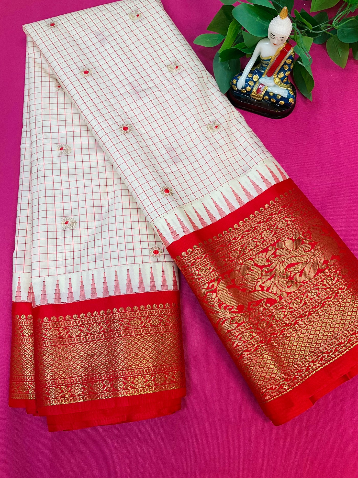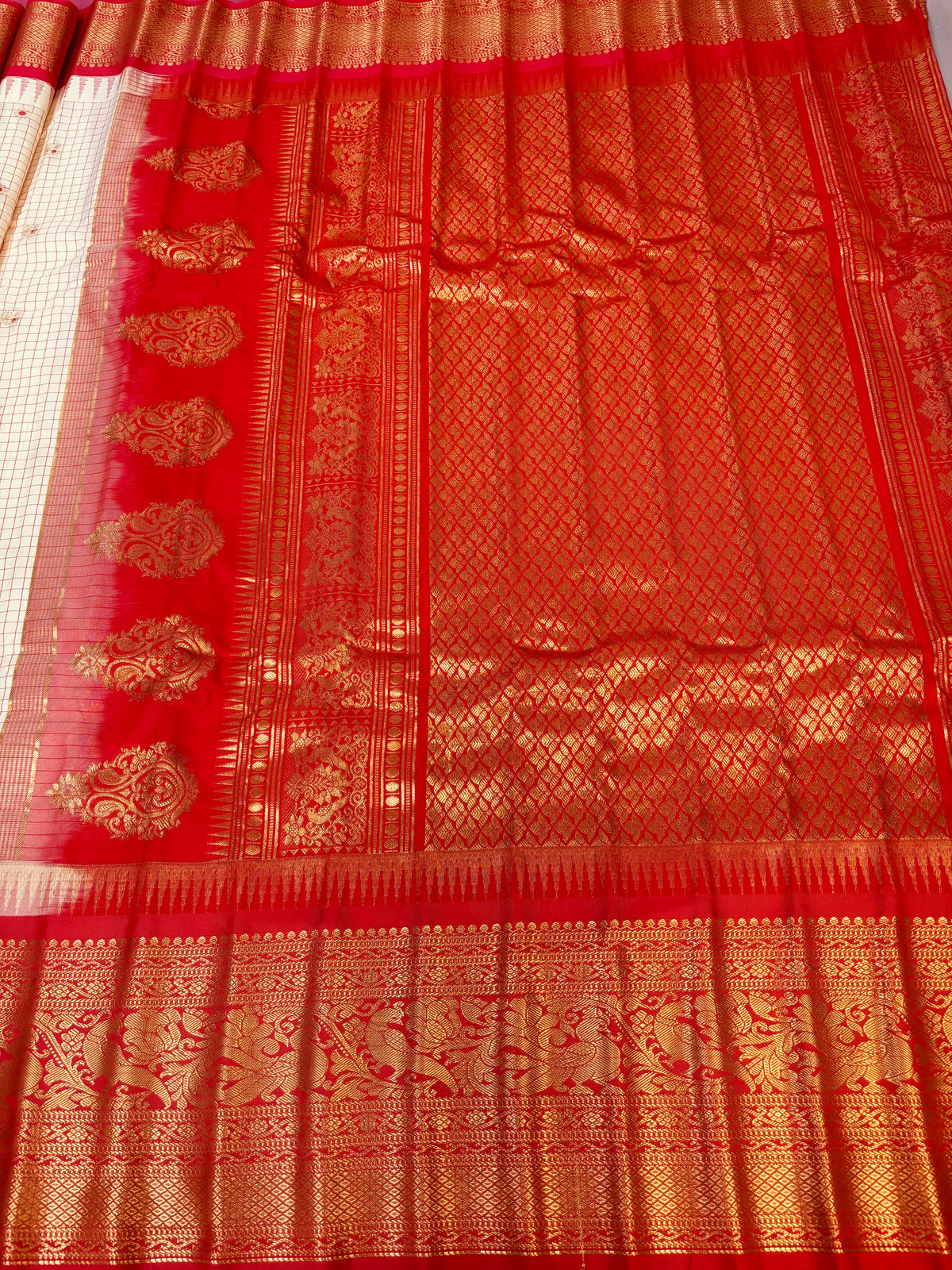 Semi Gadwal Silk Checks Saree