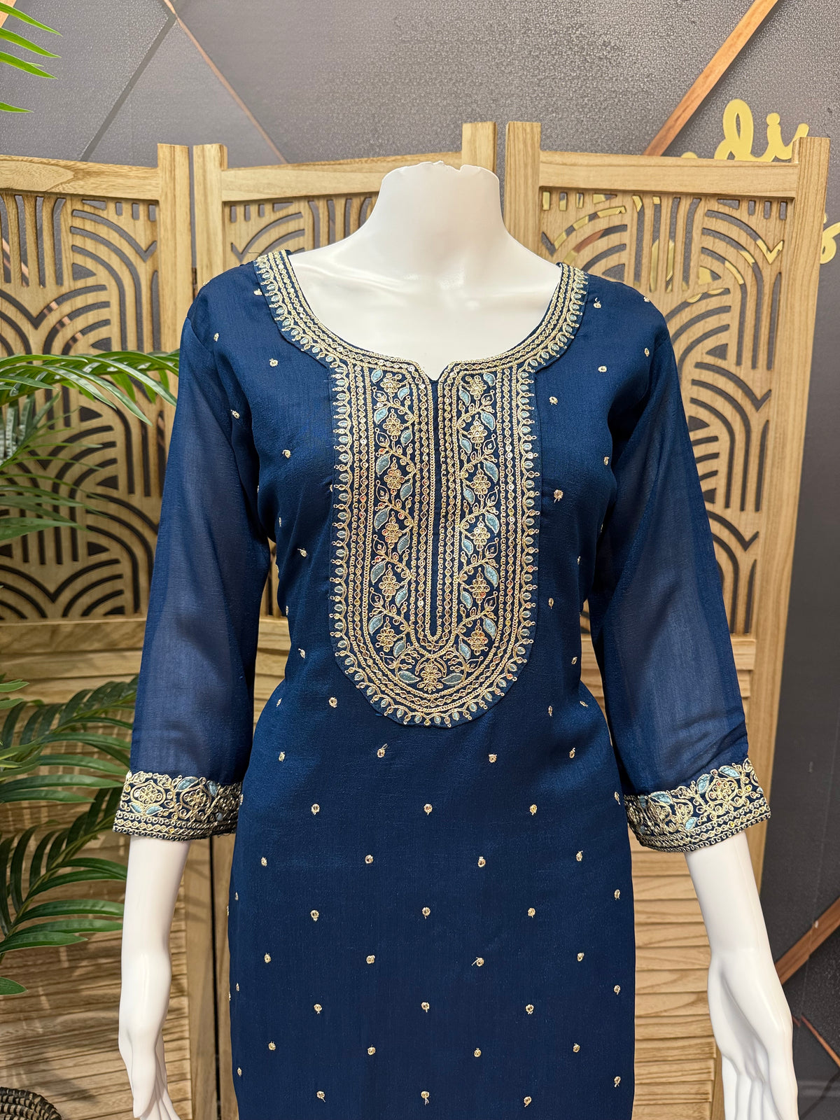 Blue Color-Party Wear Kurti set with Embroidery Dupatta.
