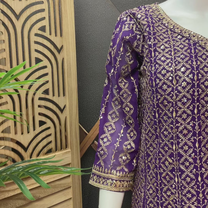 Gold Zari Heavy Work Long Anarkali Kurti set in Purple color - size 40/US Small