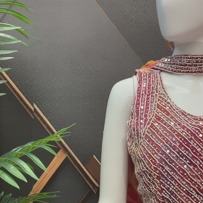 Party Wear Lehenga set with work Blouse and multicolor dupatta and skirt.
