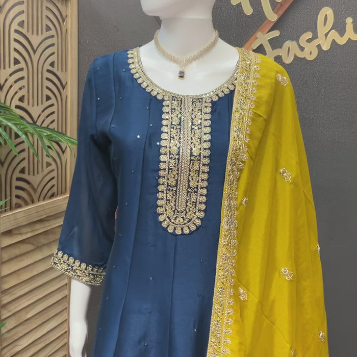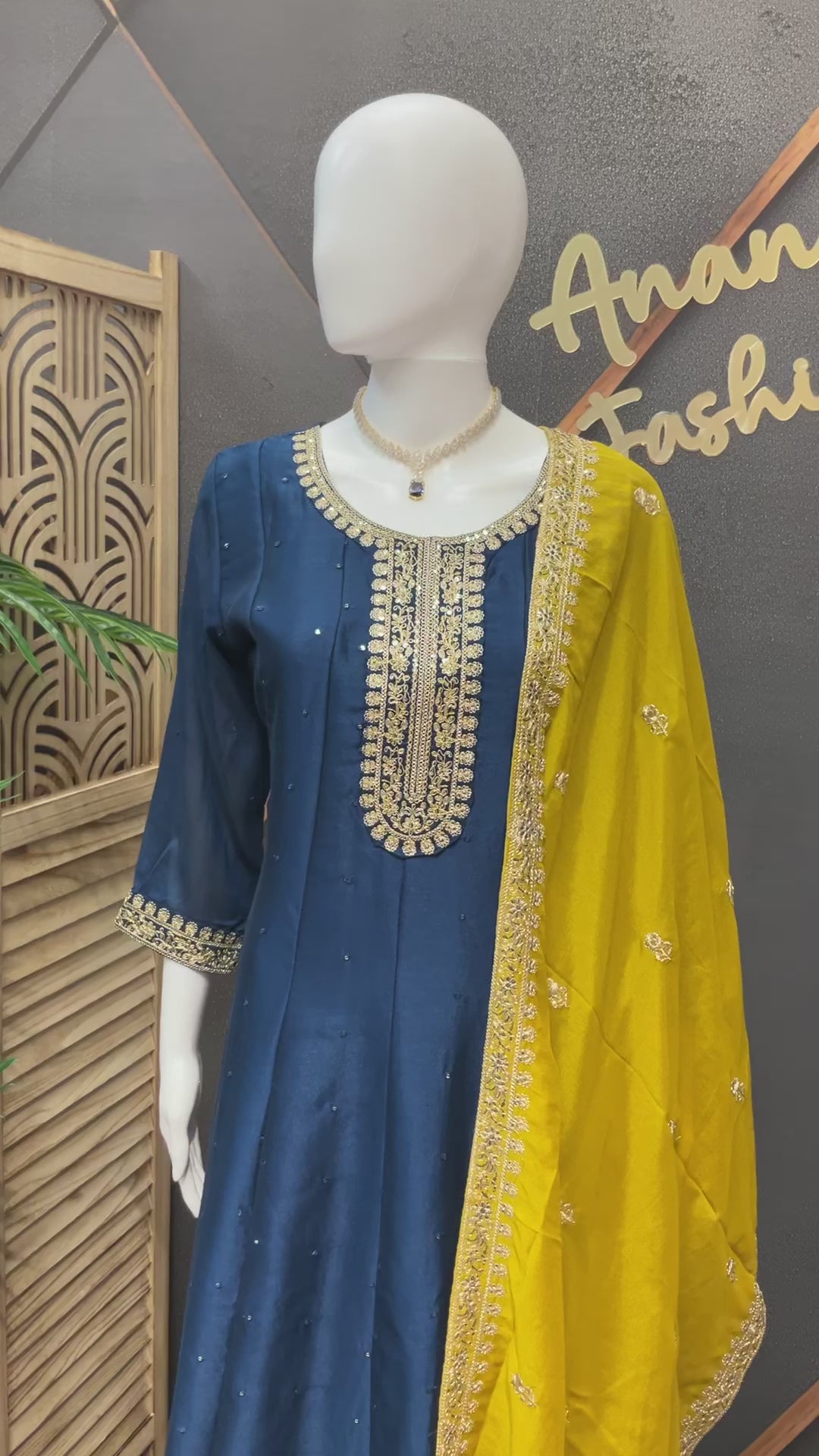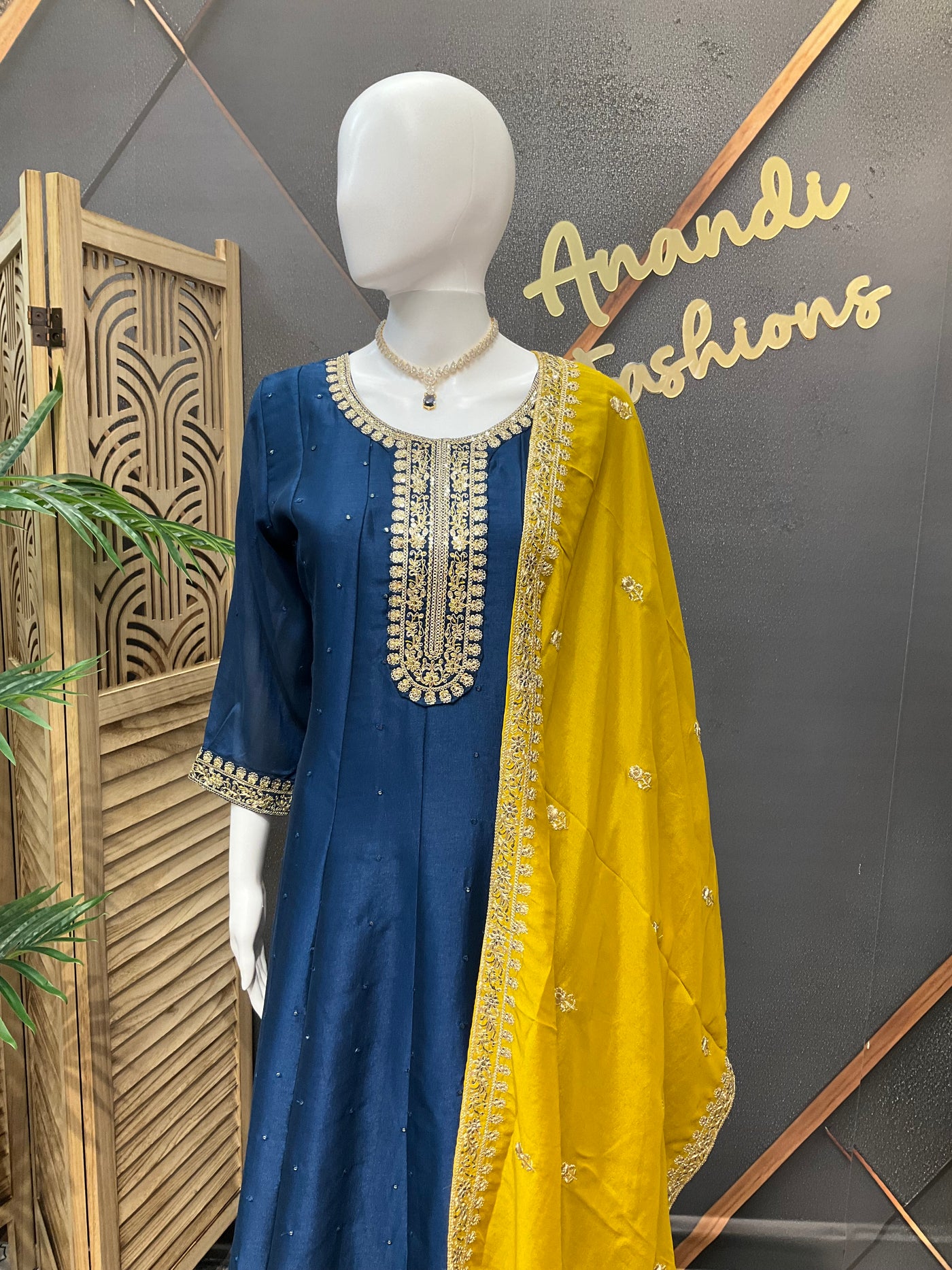 Party Wear Anarkali Kurti set with Contrast Dupatta.