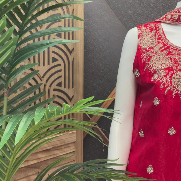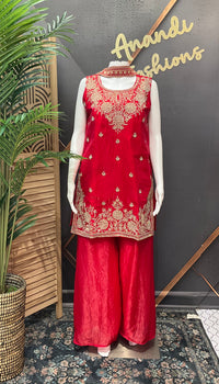 Party Wear Red Sharara set with Work.