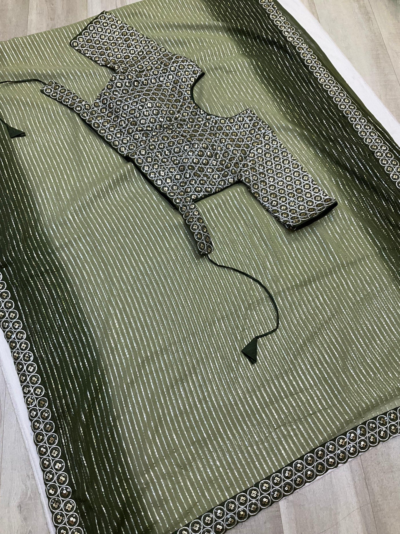Green Georgette Saree with Readymade Blouse