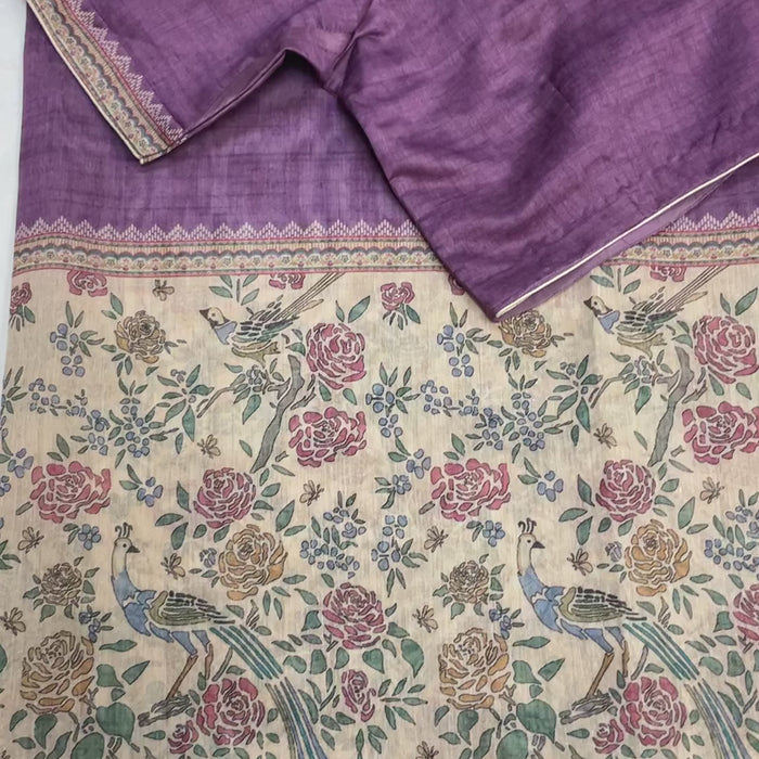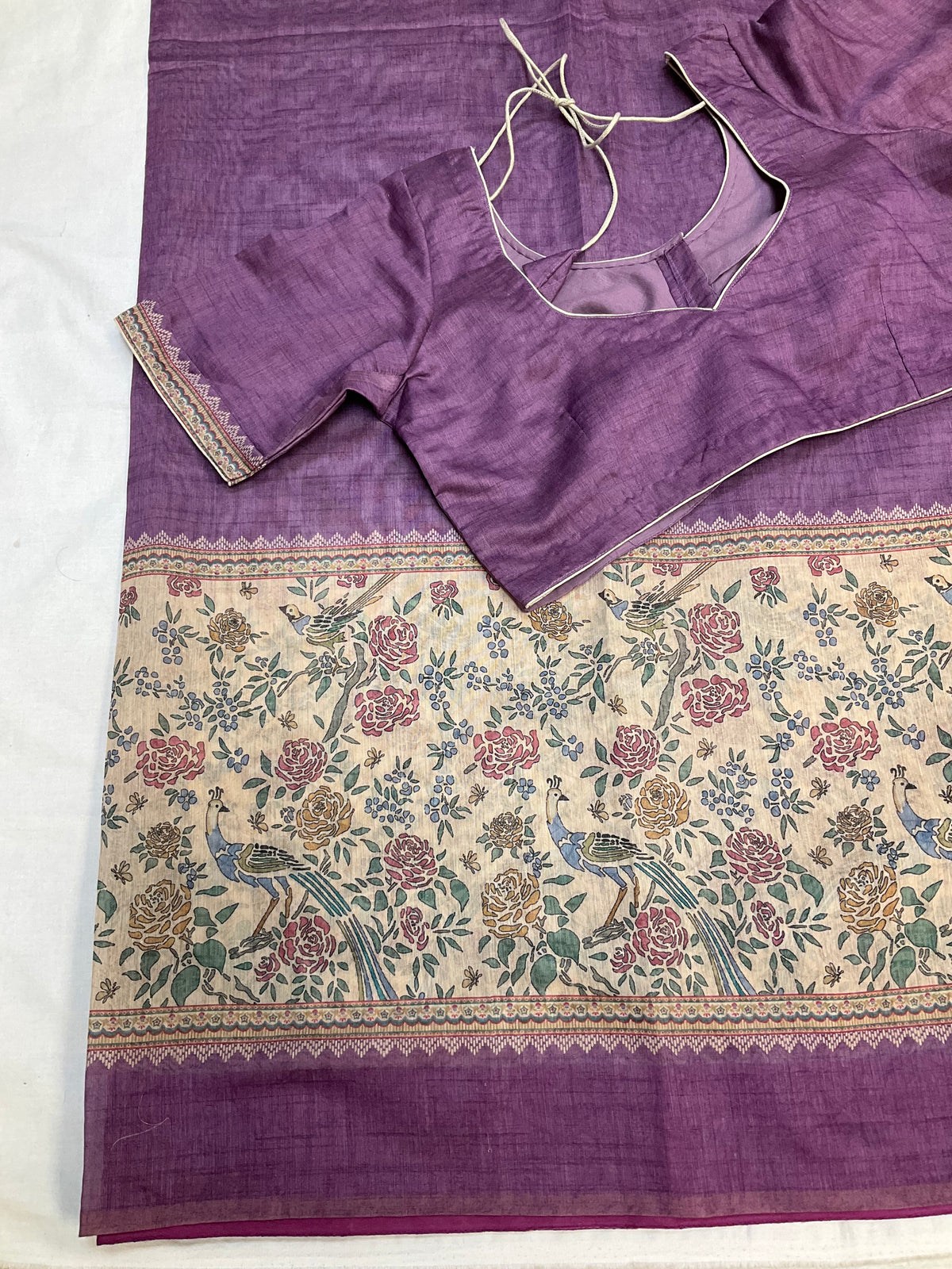 Light purple Cotton Silk saree with digital print-Stitched blouse and fall pico Done
