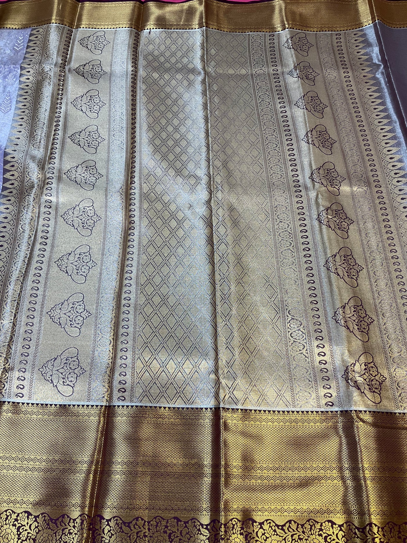Semi Silk Kanjeevaram- Allover design Lavender Saree with Pink Border.
