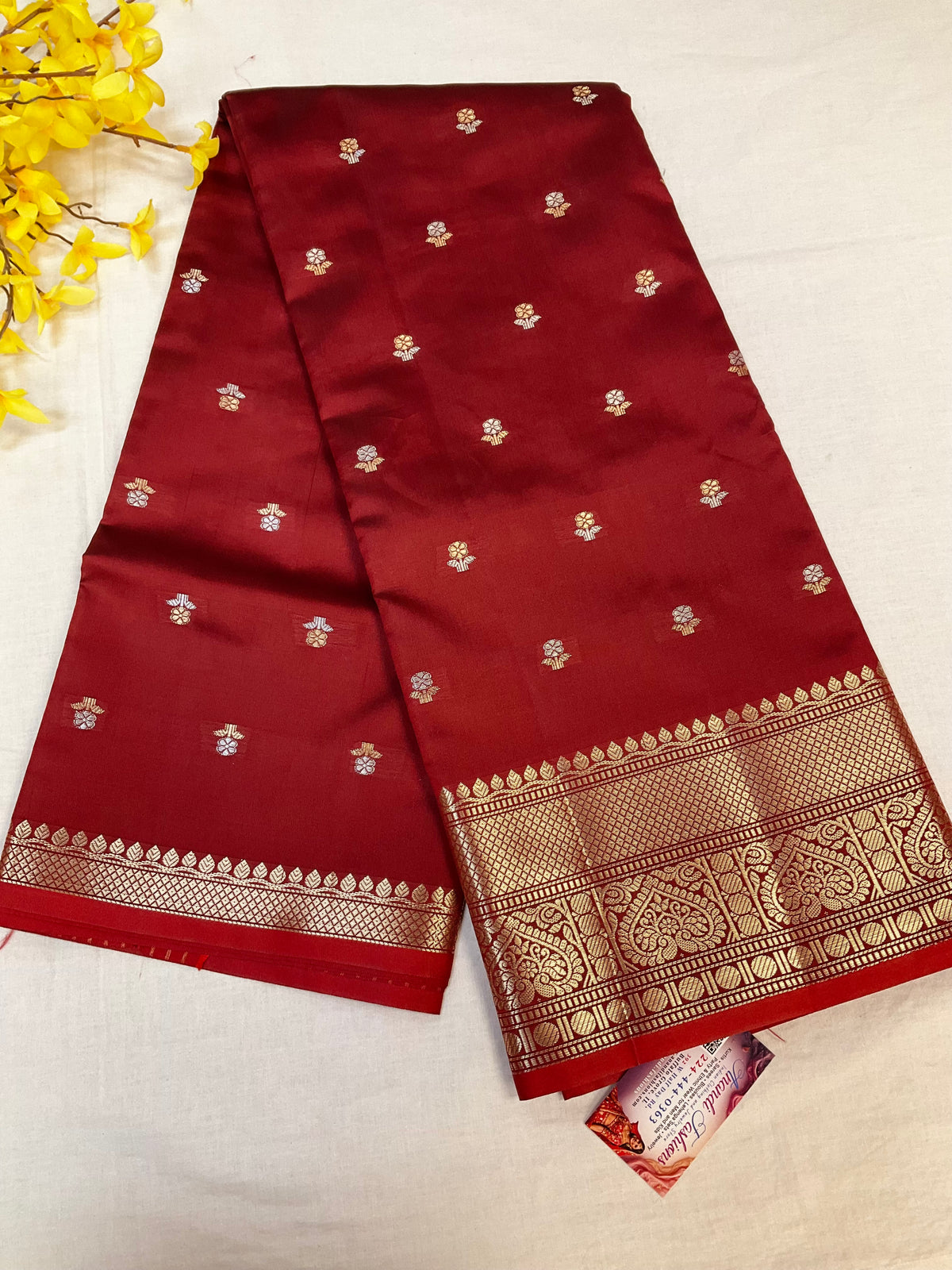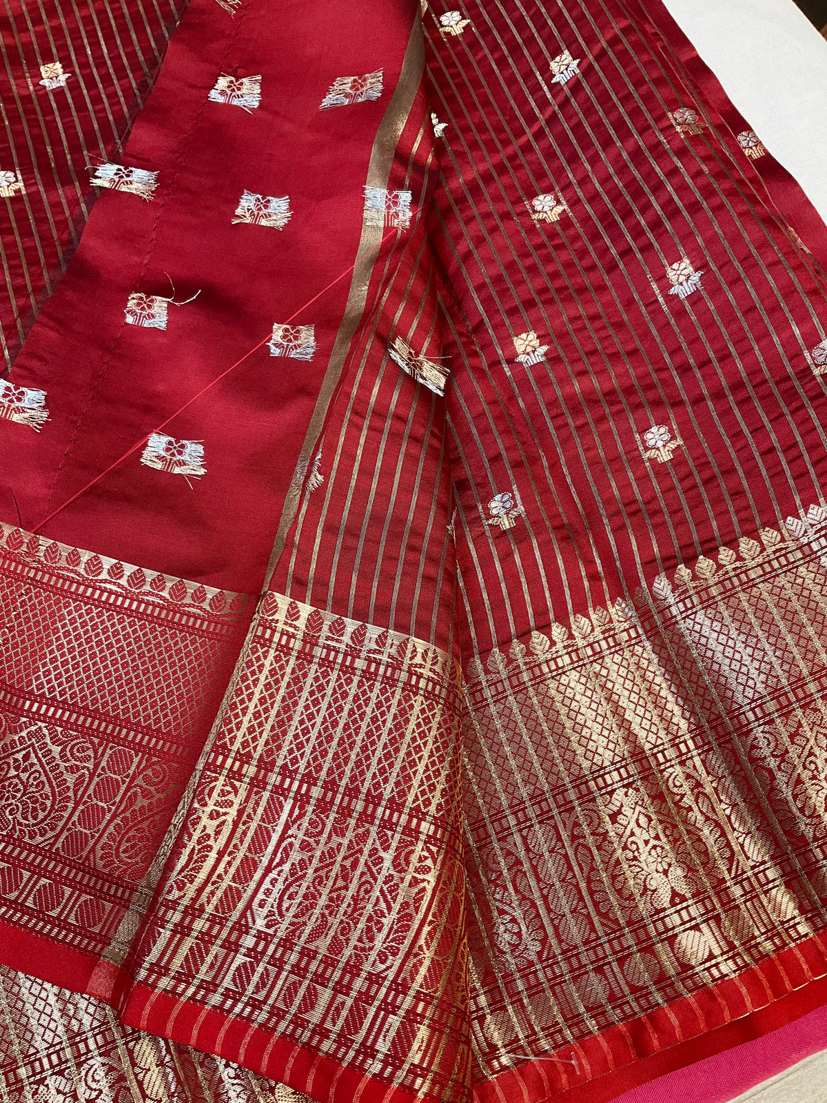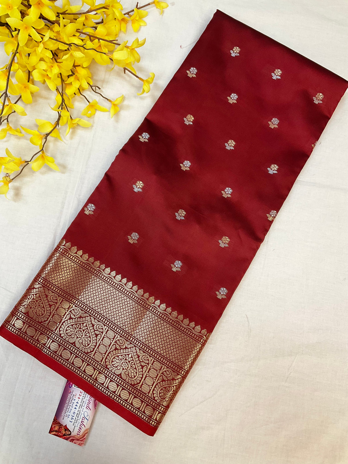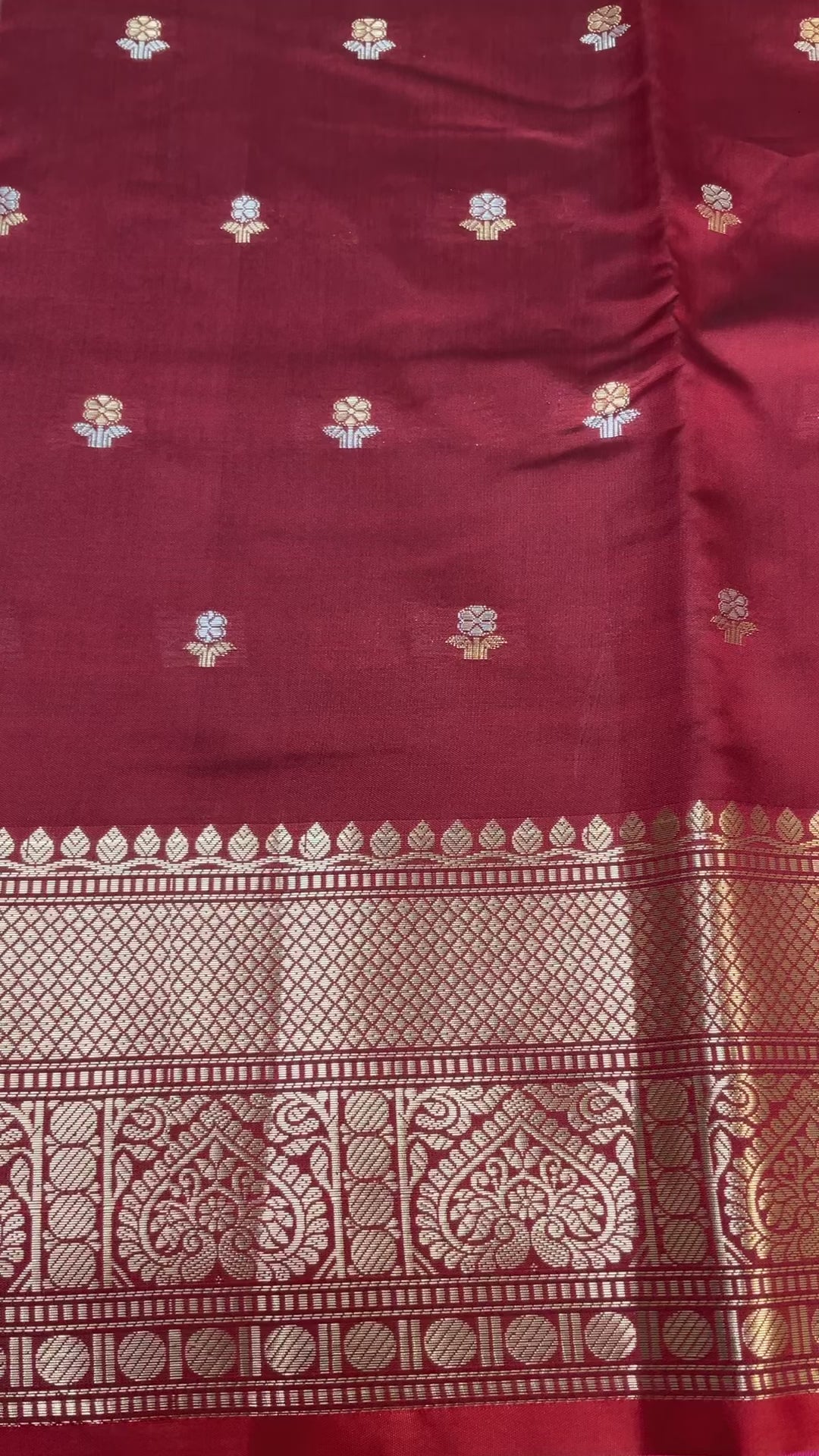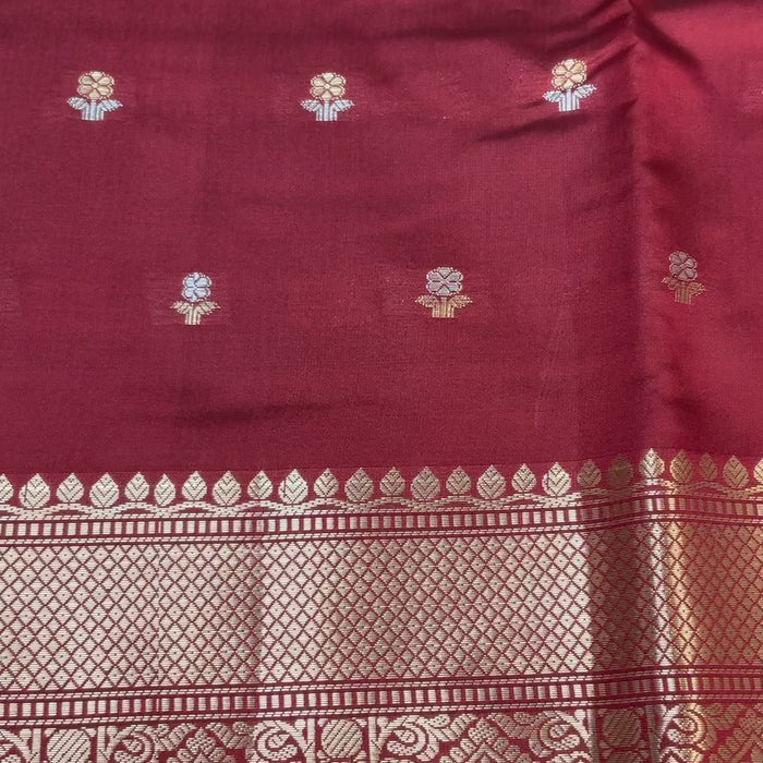 Traditional Maroon Benarasi Silk Saree with 7’ inch Border.
