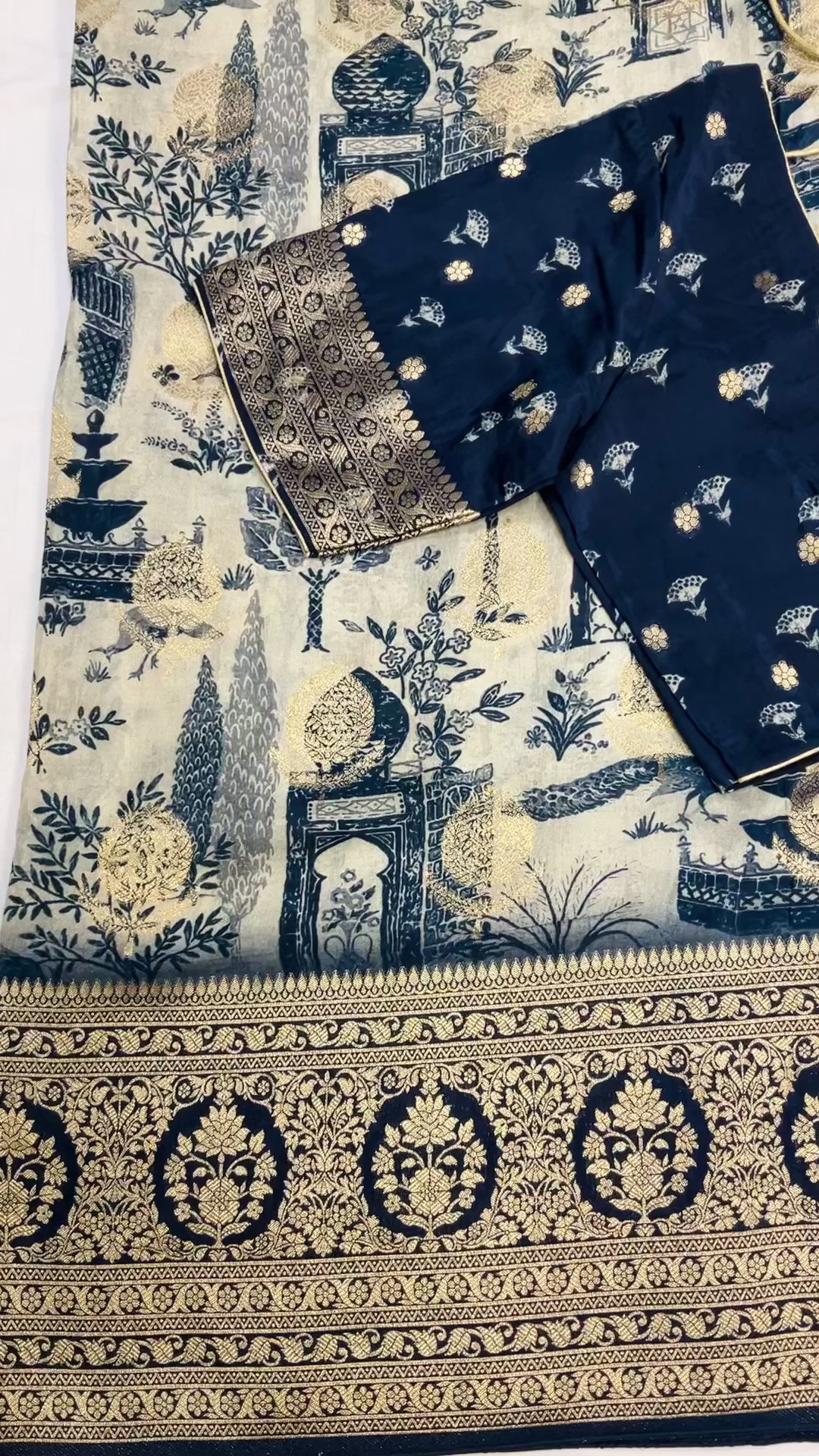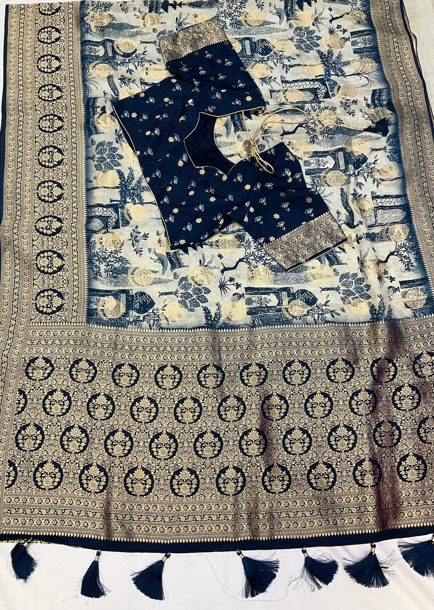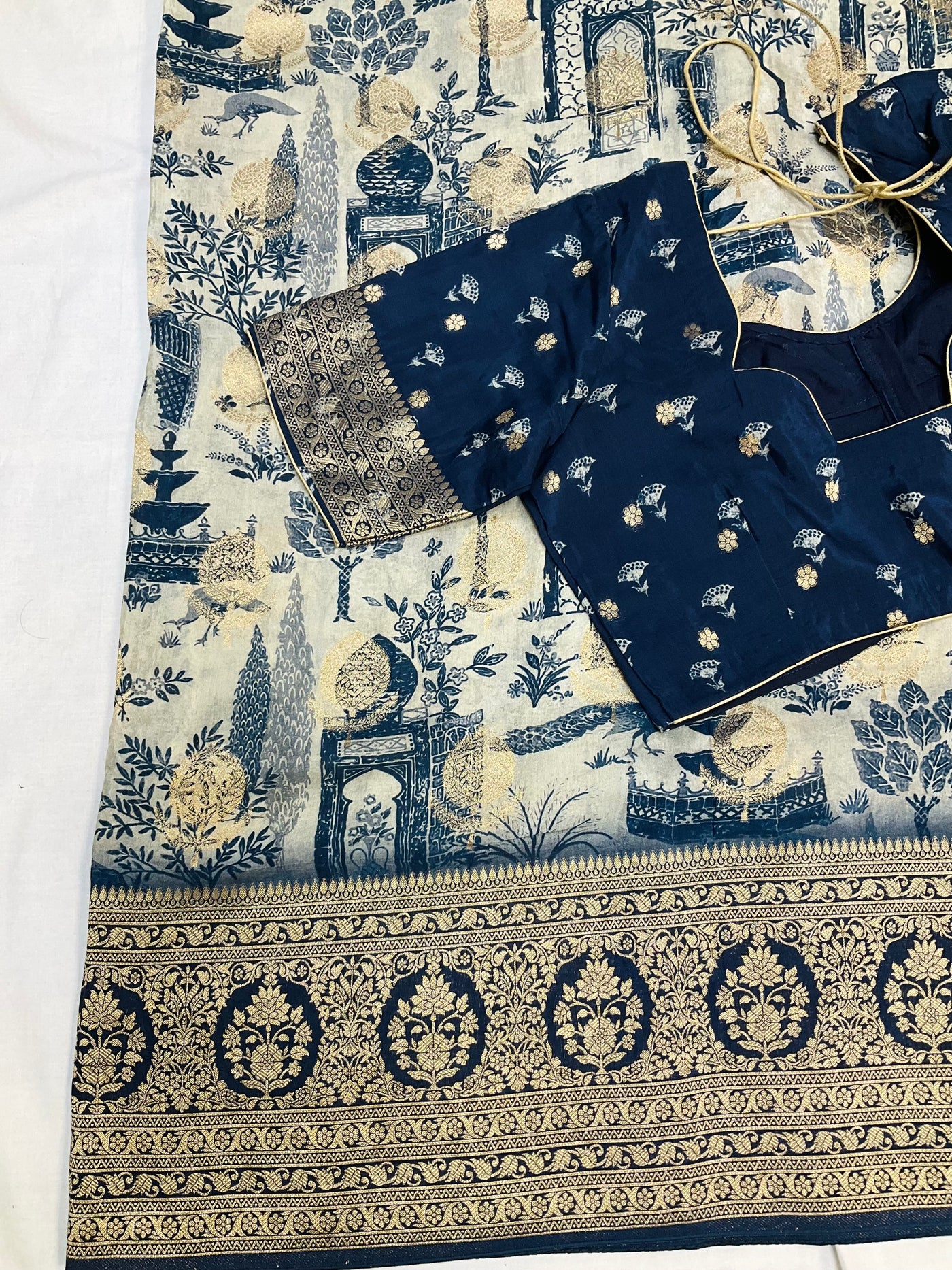 Inform when this item available Unique Designer Russian Silk Saree with Stitched blouse - fall pico done