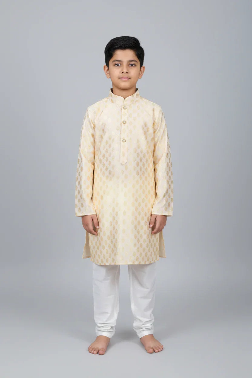 Introducing our Boys Kurta Pajama - Elegant Party Wear Light Yellow Boys Kurta set, perfect for any special occasion. This Ethnic Boys Duo is a Festive Kurta pajama Set made for creating a stylish Kurta Pair. This Traditional Boys Attire is a Boy's Fashion Combo that ensures a Comfortable Ensemble. This Elegant Ethnic Set is a Trendy Kurta Combo for a Modern Boys Dress look. The Contemporary Combo of this Versatile EthnicWear in Indian attire is sure to make your little one stand out in this exquisite Party Wear.