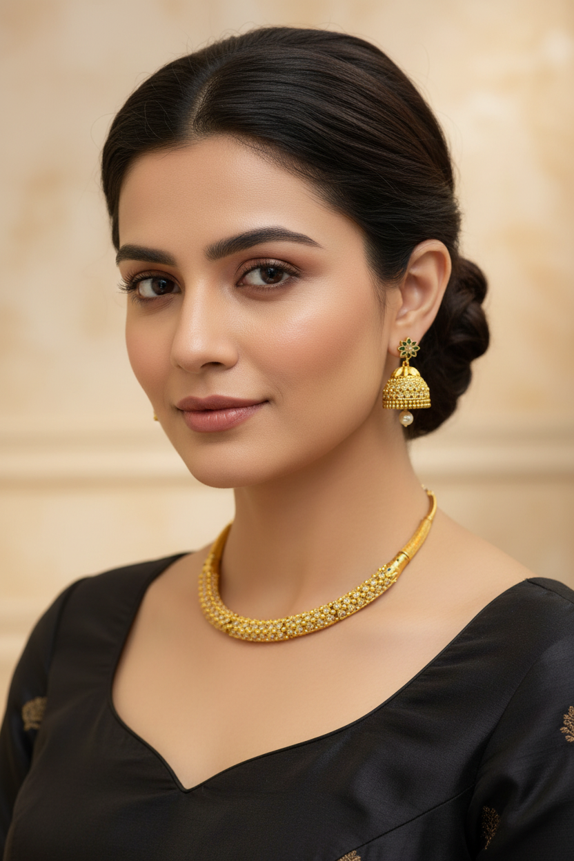 Gold Finish CZ Stone Necklace Set - Elegant Party Jewelry