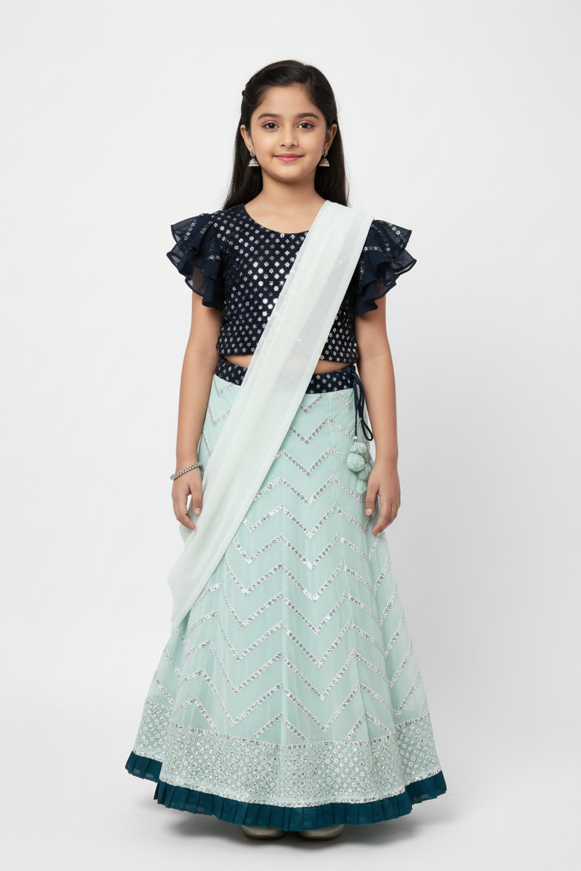 Little Girls - party wear Blue lehanga set- size 28 - Size 28 / Navy blue