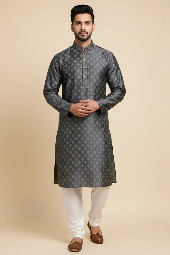 Mens Kurta Set - Red and Grey Variant Party Wear Kurta Pajama Set - Grey / Size 40